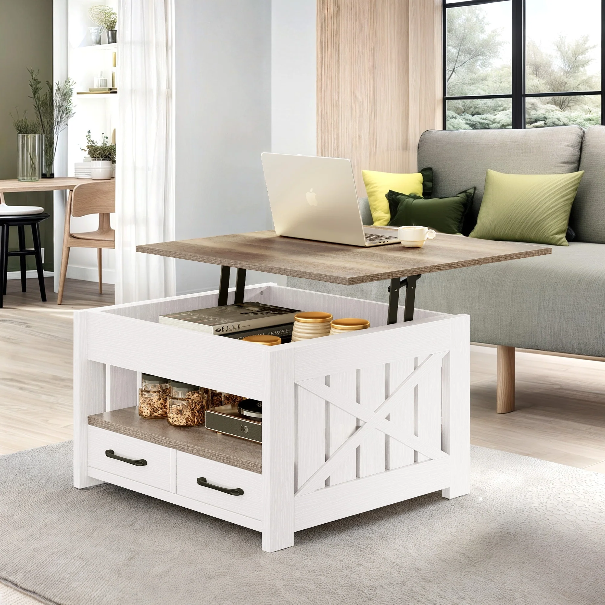 Moasis Round Lift Top Coffee Table with Hidden Storage