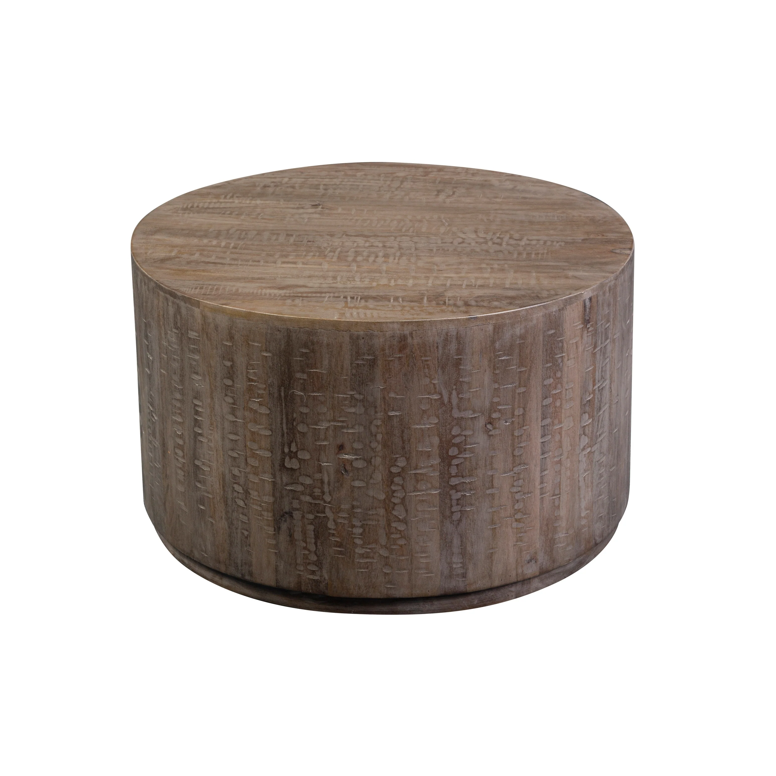 Drum Gray Wash Mango Wood Round Coffee Table