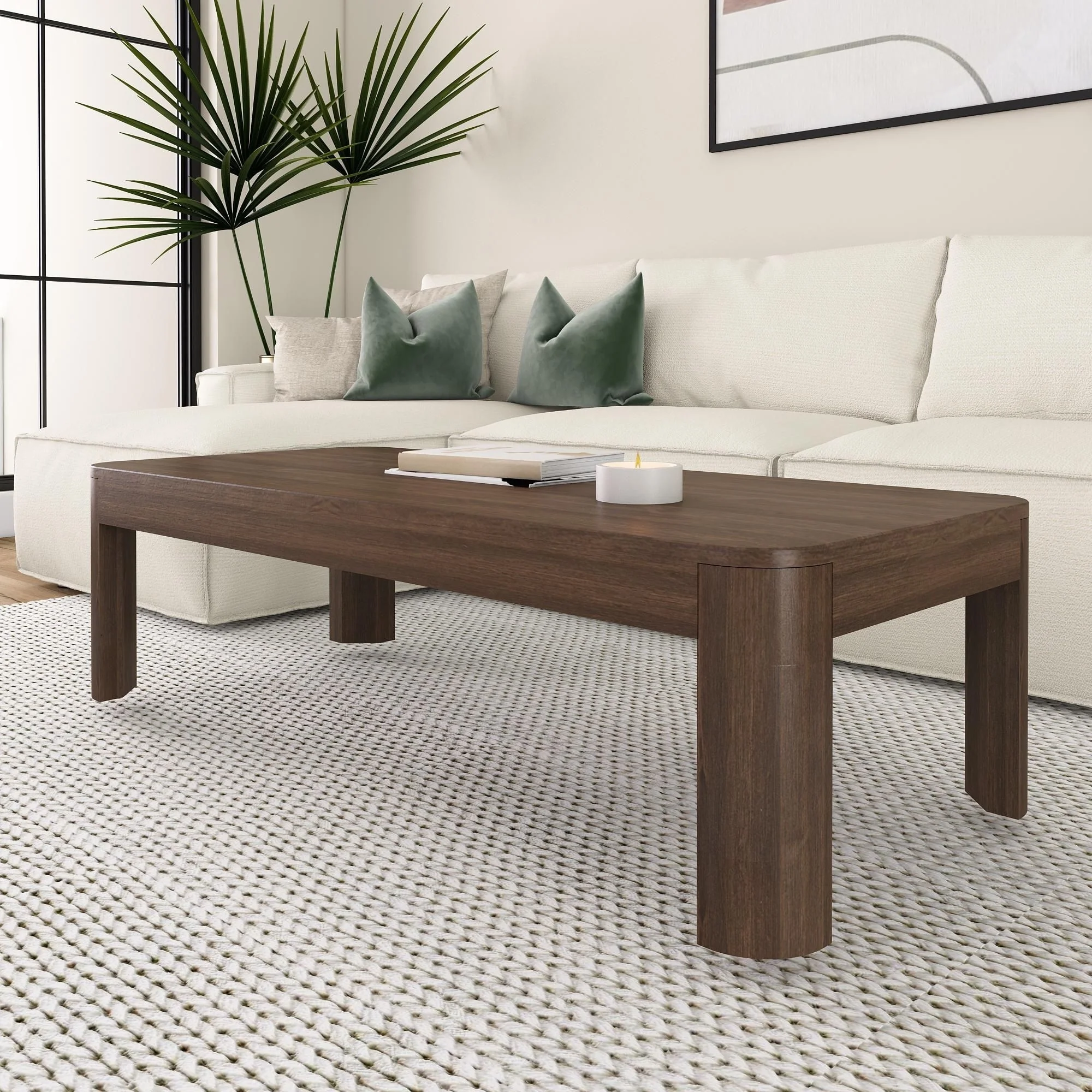 Plank and Beam Contour Curved Rectangular Coffee Table - 54