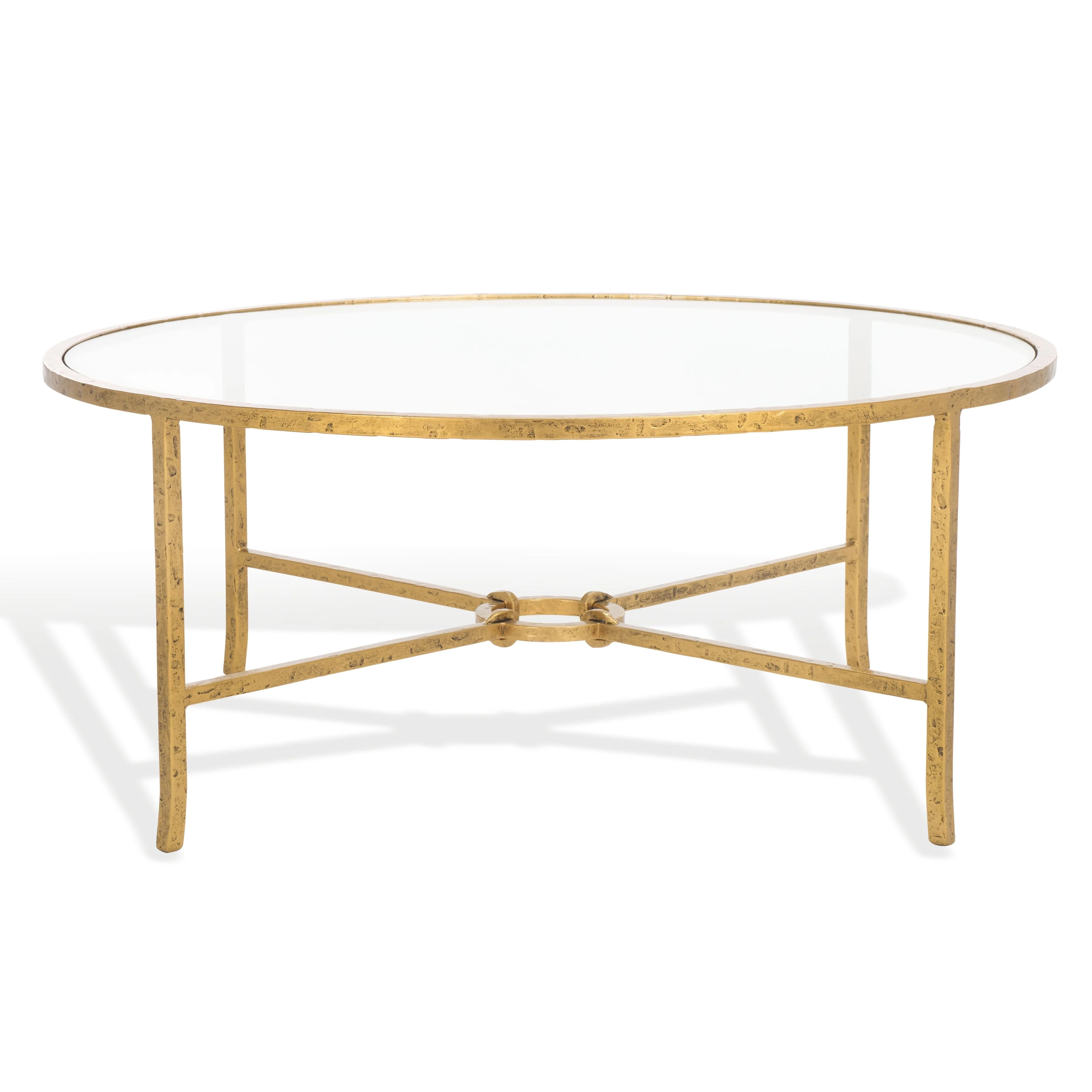 Round Glass Top Coffee Table Solid Wood - 35.4×35.4×16