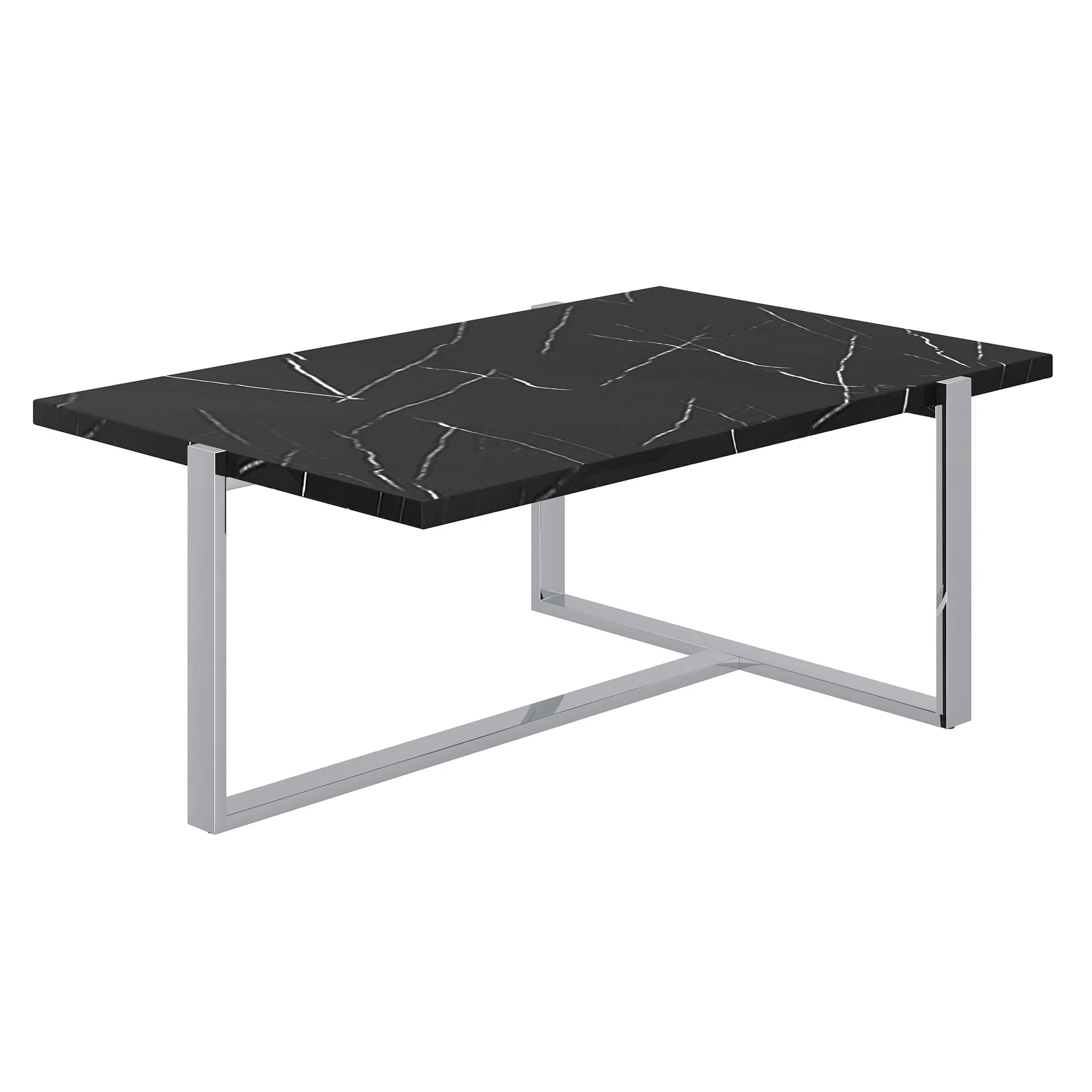 Granite and Paper Veneer and Metal Rectangular Coffee Table