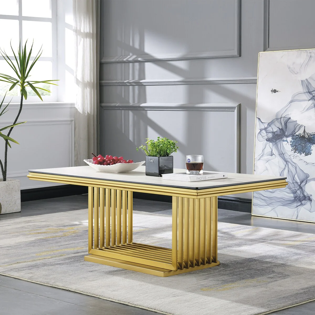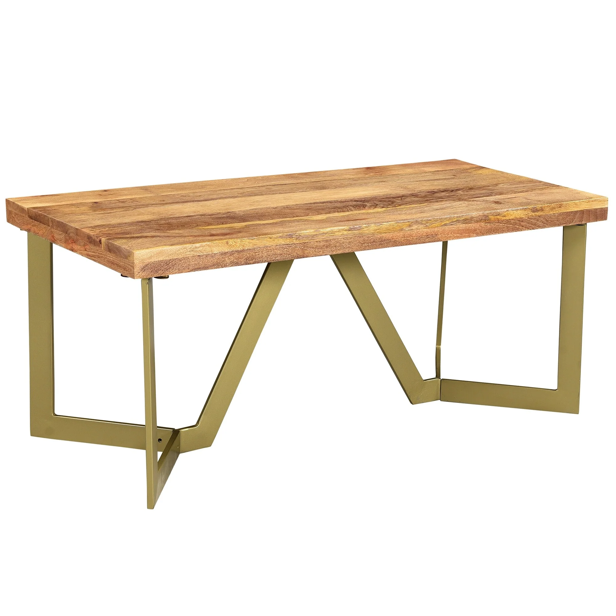 Rustic Modern Solid Wood Coffee Table in Natural & Aged Gold