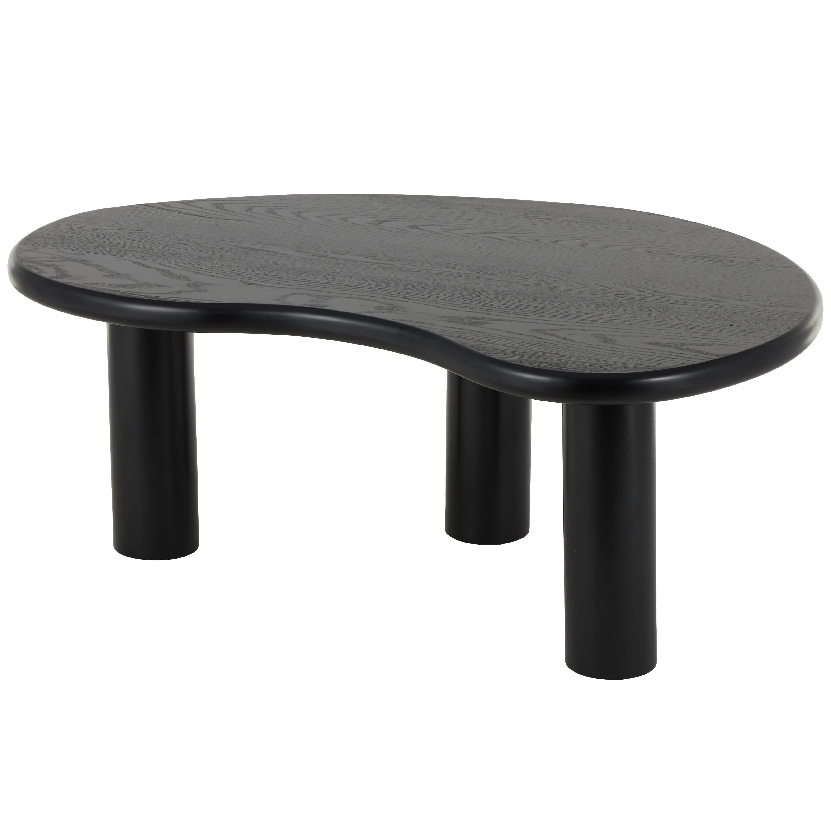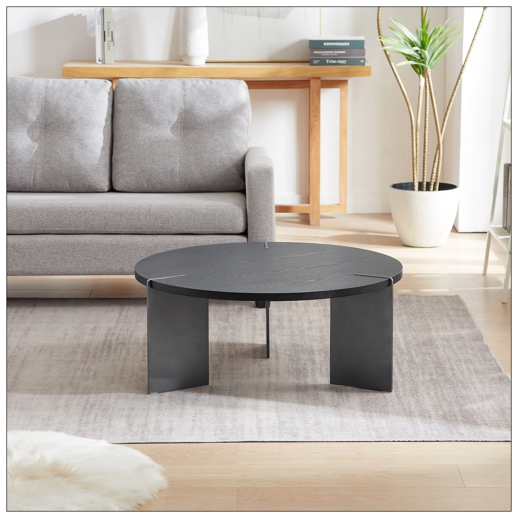 Round Coffee Table Black Oak Wood Surface and Black Metel Feet