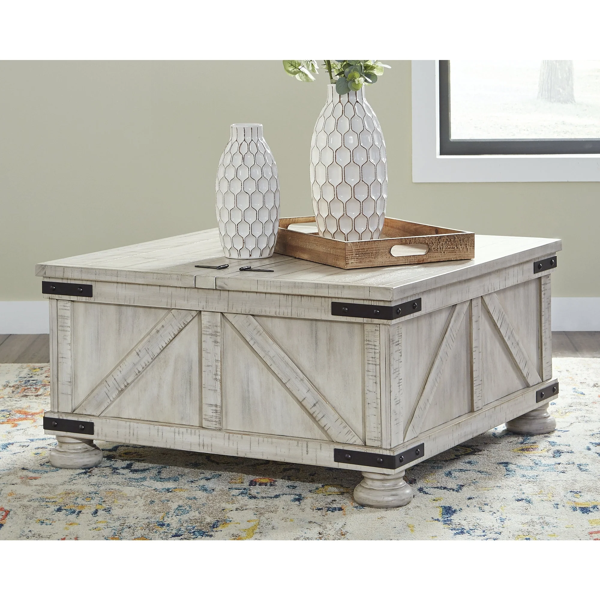 Farmhouse Wood Accent Coffee Table with Large Storage Shelf