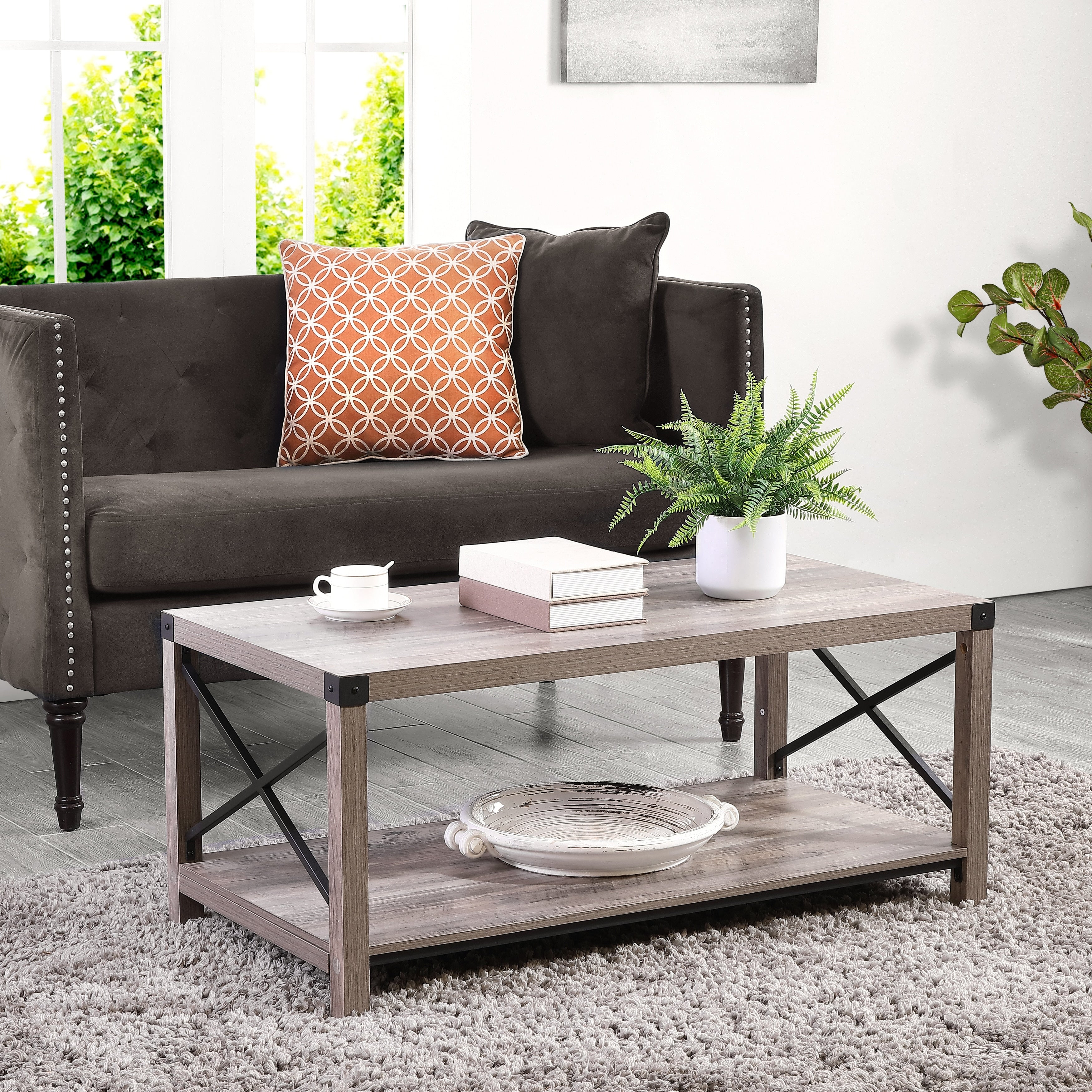 Ledel 39-inch Rustic Wood Coffee Table with Storage Shelf