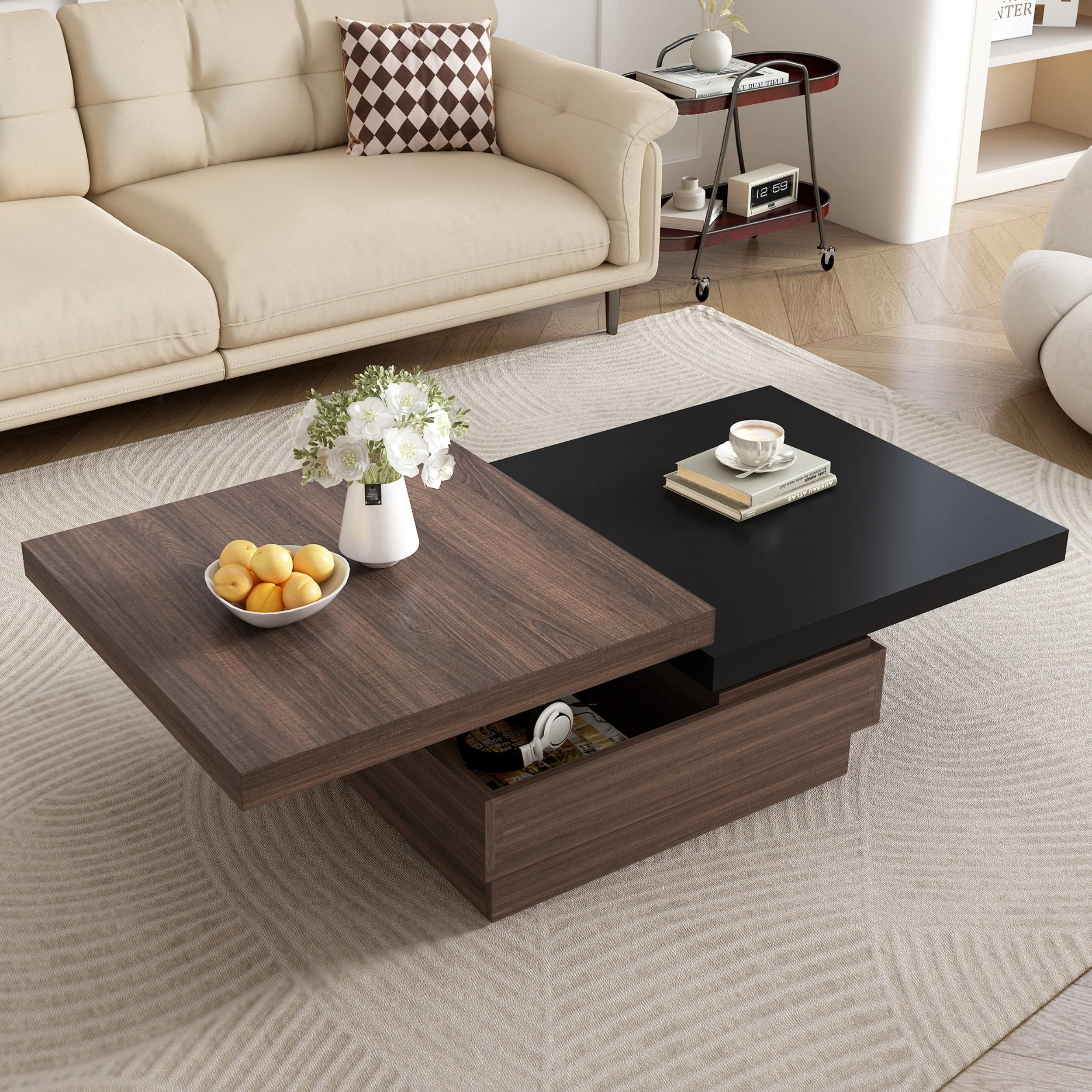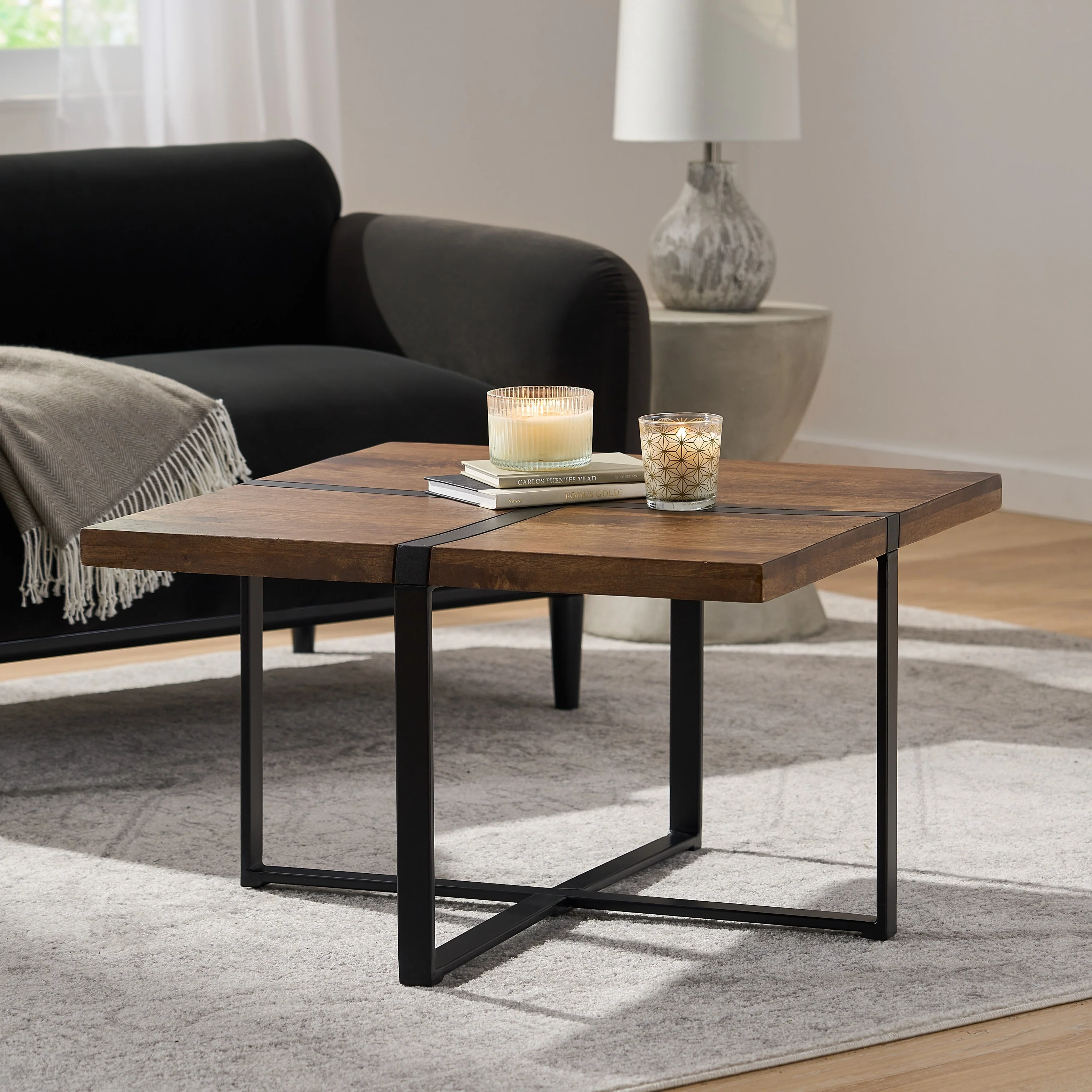 Modern Square Coffee Table With Wood Grain