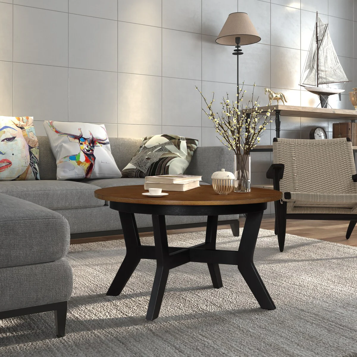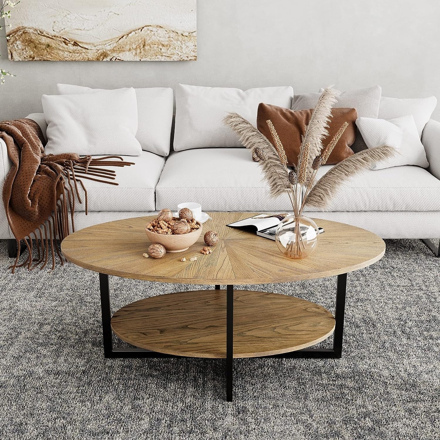 Mid Century Circle Wooden Coffee Table for Living Room Farmhouse