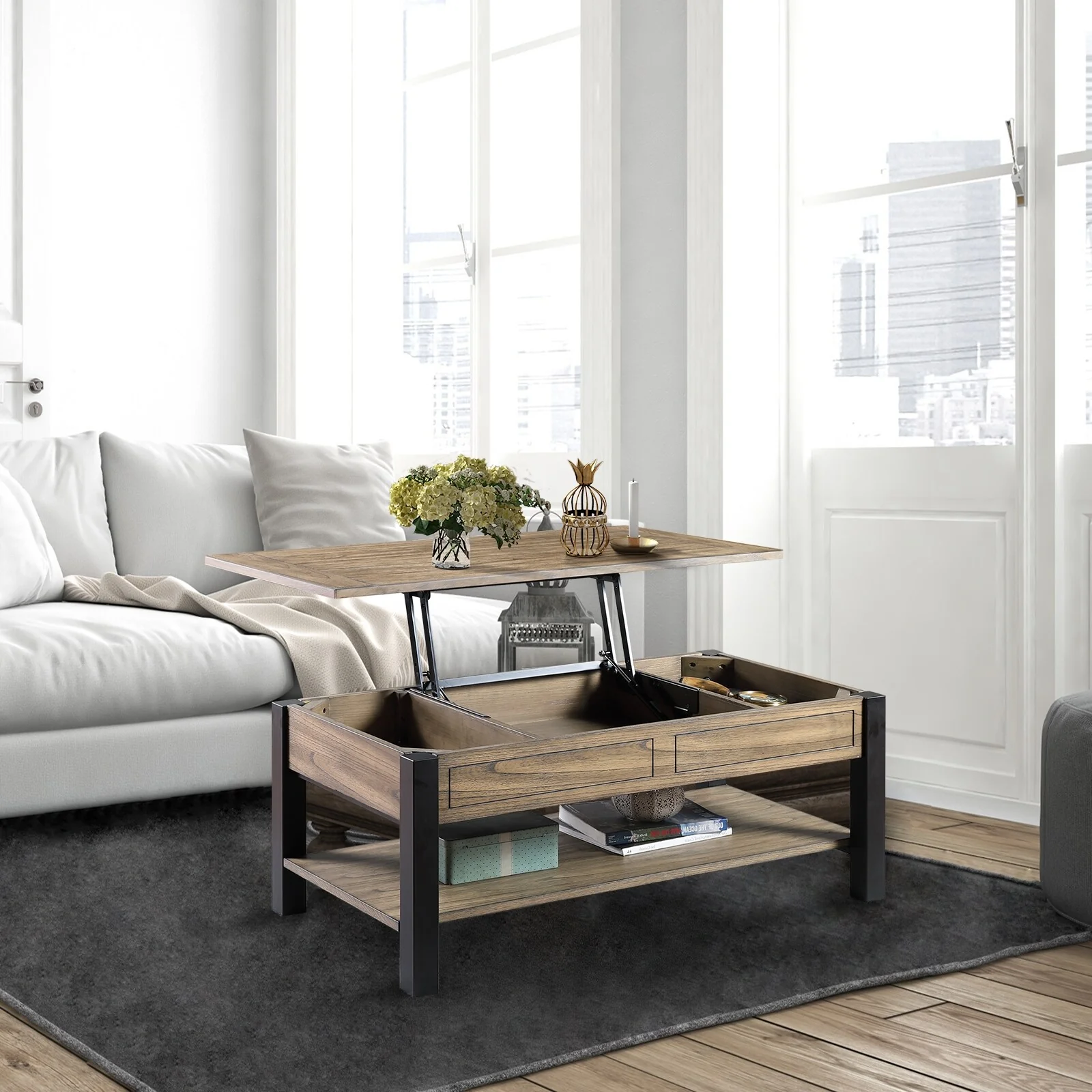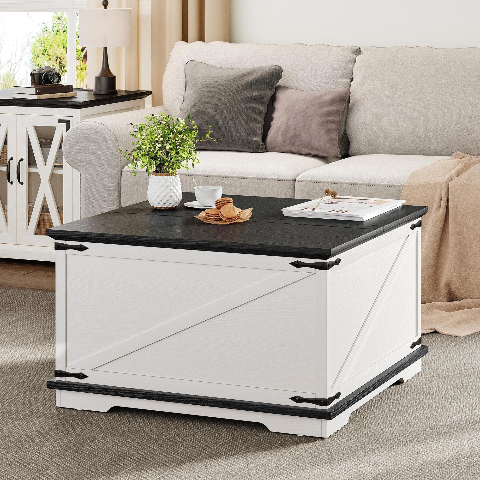 Moasis Farmhouse Lift Top Square Coffee Table with Storage