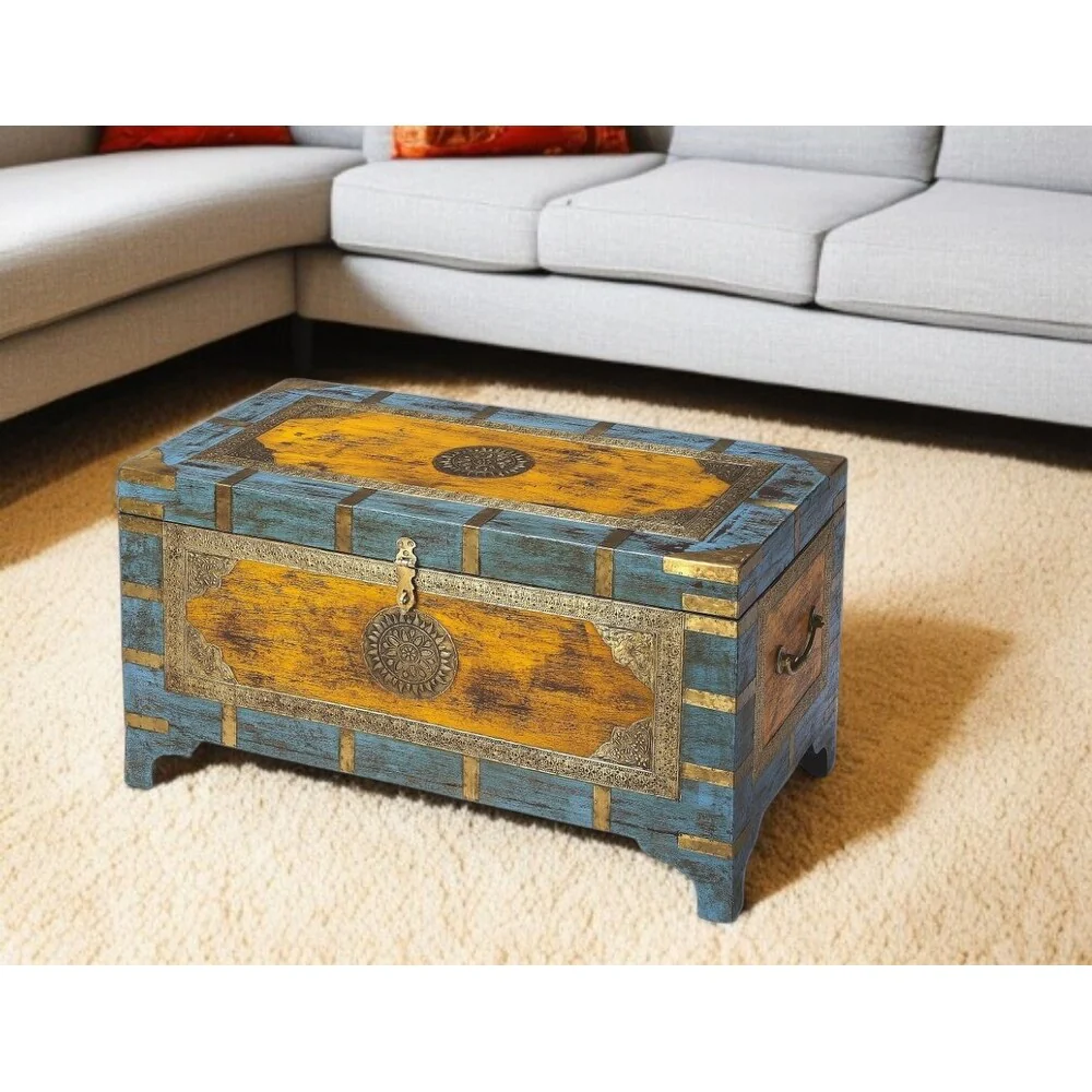 Hand Painted Brass Inlay Storage Trunk