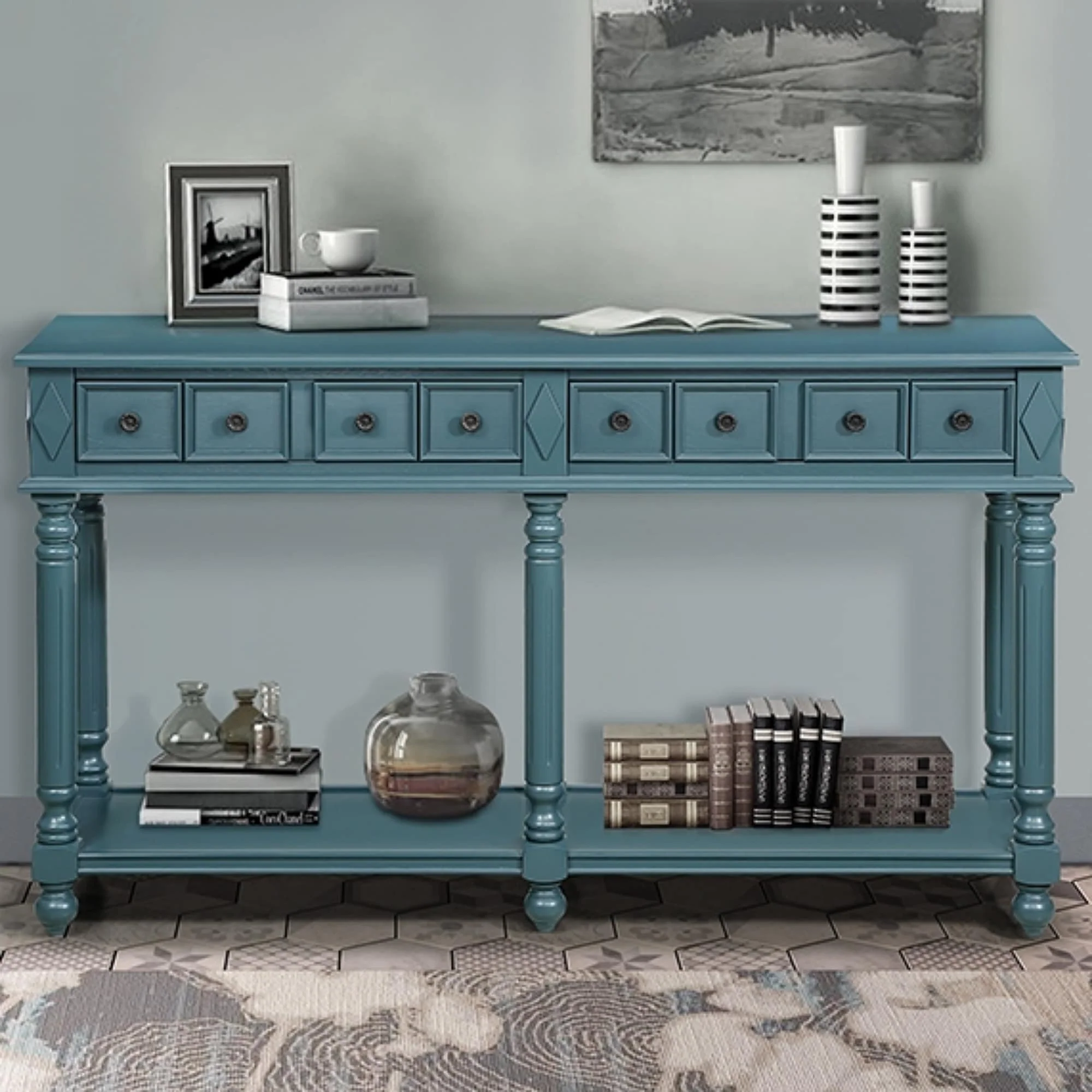 Console Table with 3-Tier Open Storage Spaces