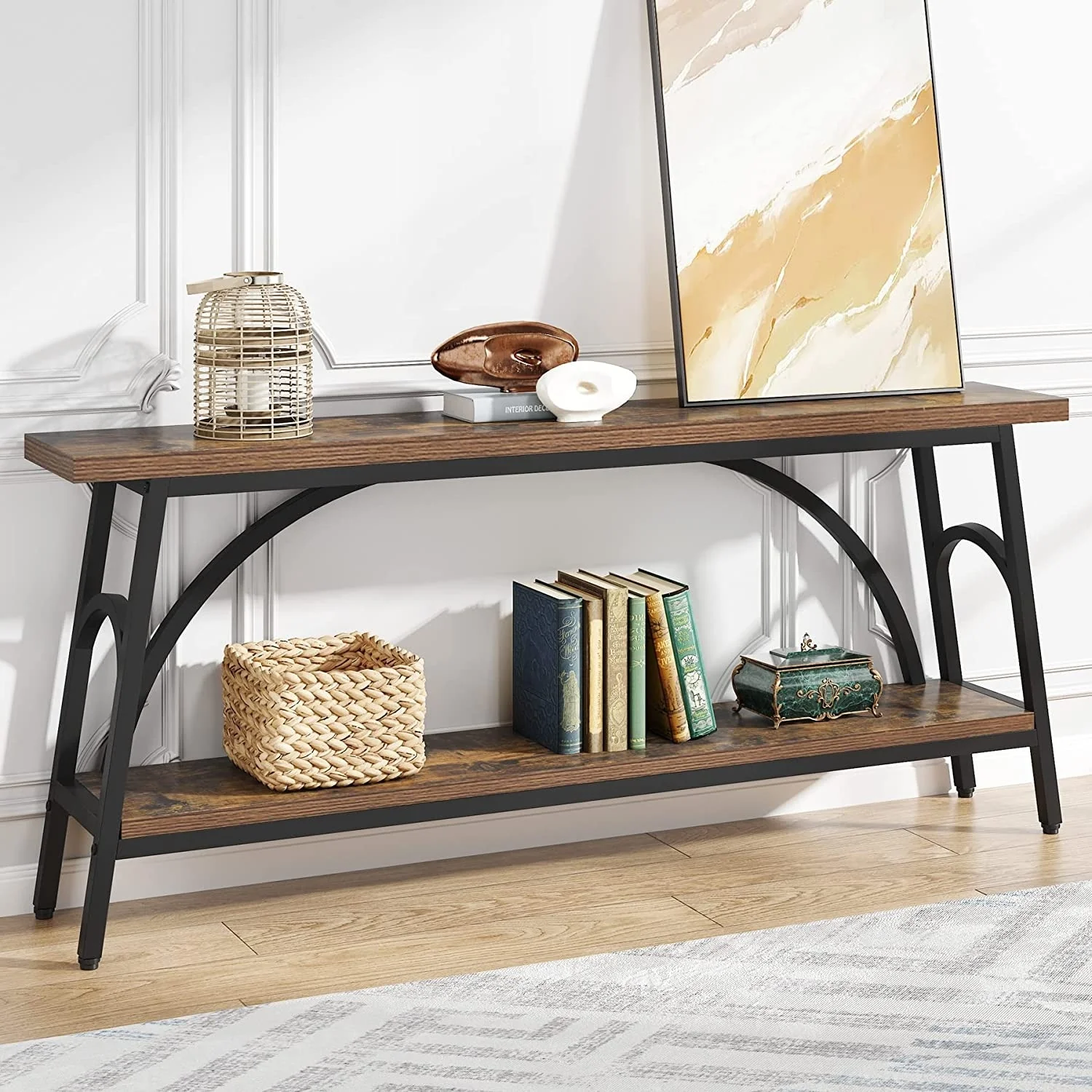 Narrow Long Console Table Sofa Table with Half Moon Frame