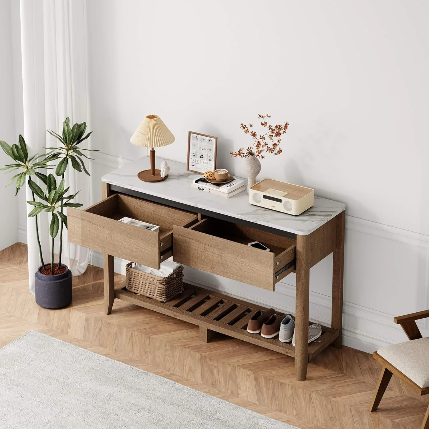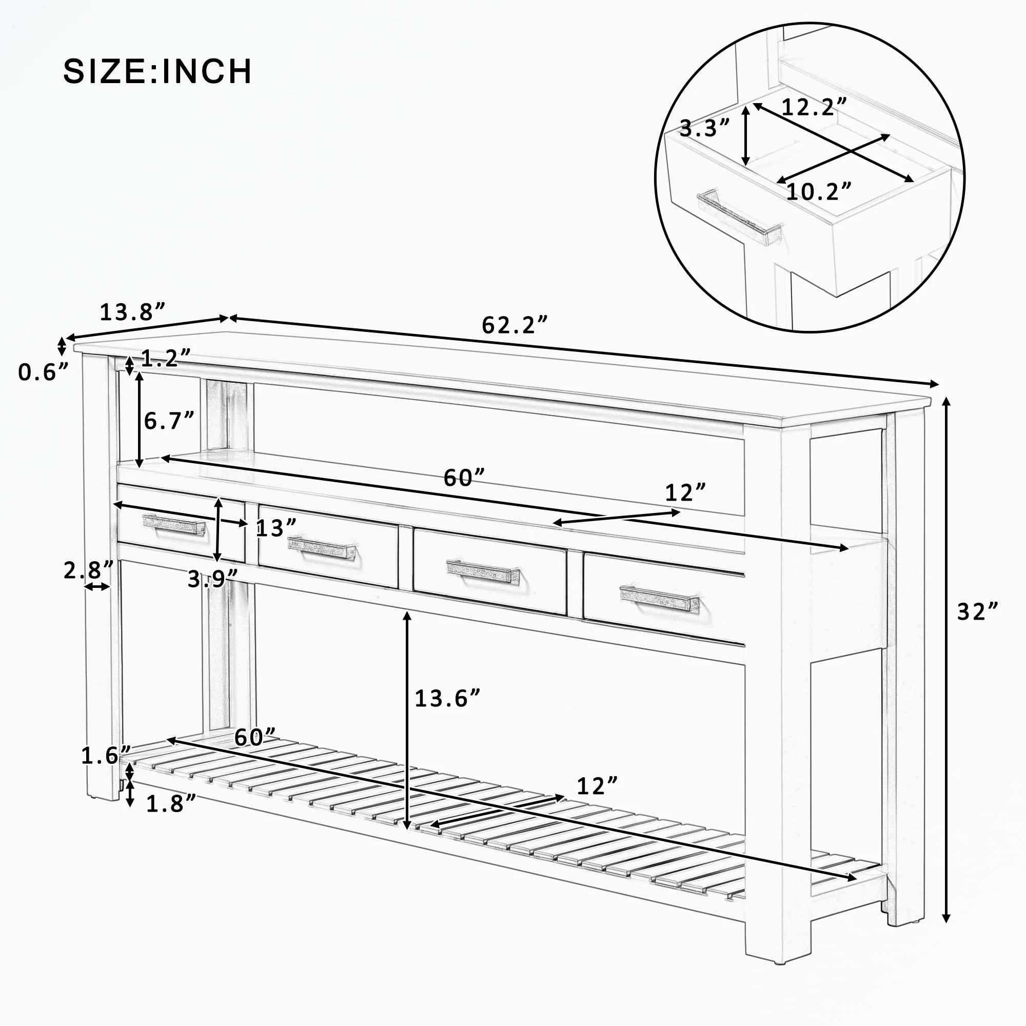 Console Table with 4 Drawers and 2 Shelves