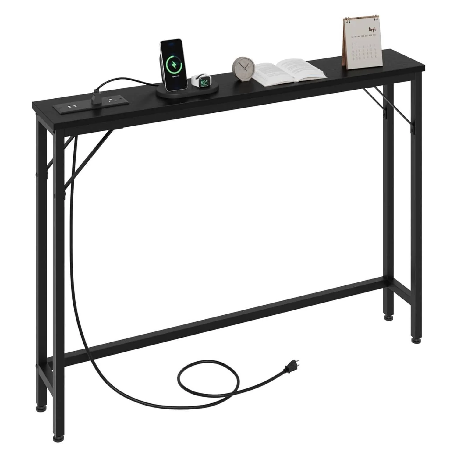 Narrow Sofa Table with Outlets for Living Room, Entryway