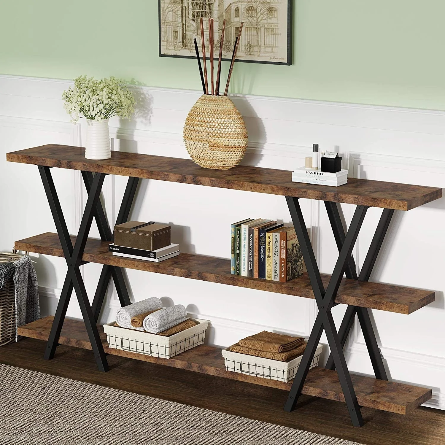 Long Wood Console Table with 3 Drawers and 1 Bottom Shelf