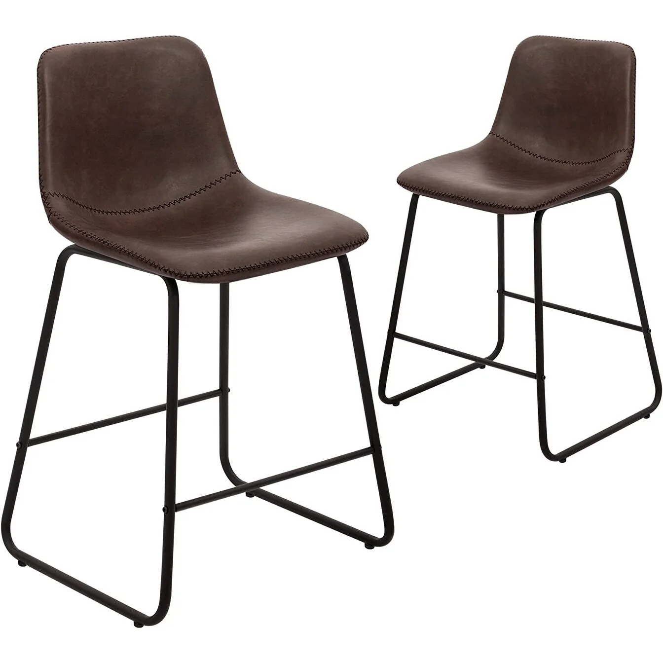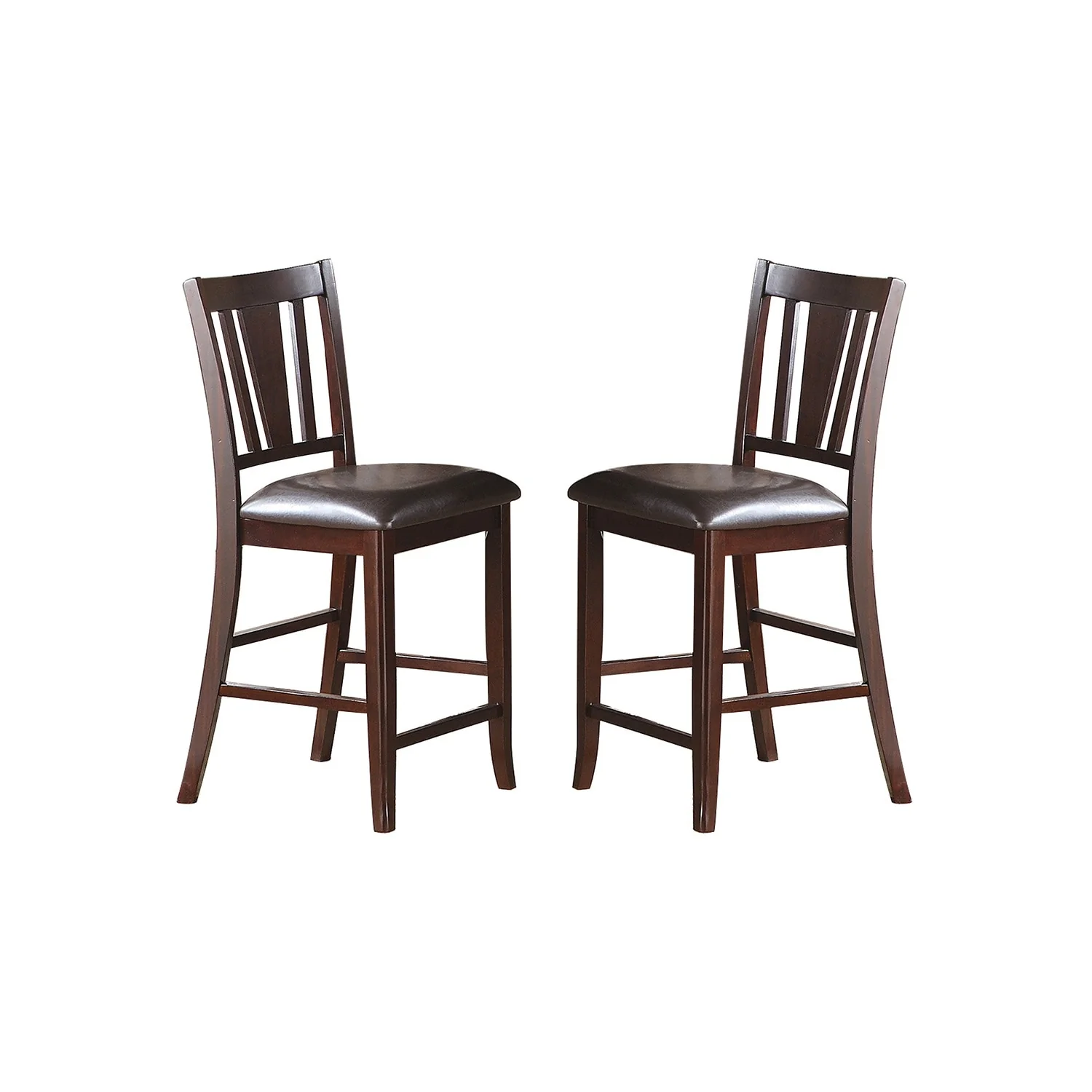 Upholstered Counter Height Chairs in Dark Brown Finish, Set of 2