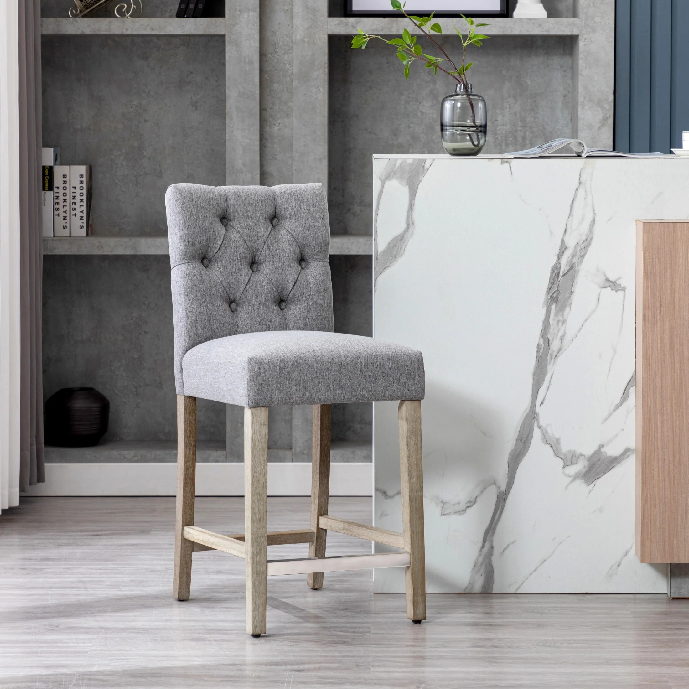 Carter 24 Classic Button Tufted Counter Stool, Antique Gray Legs