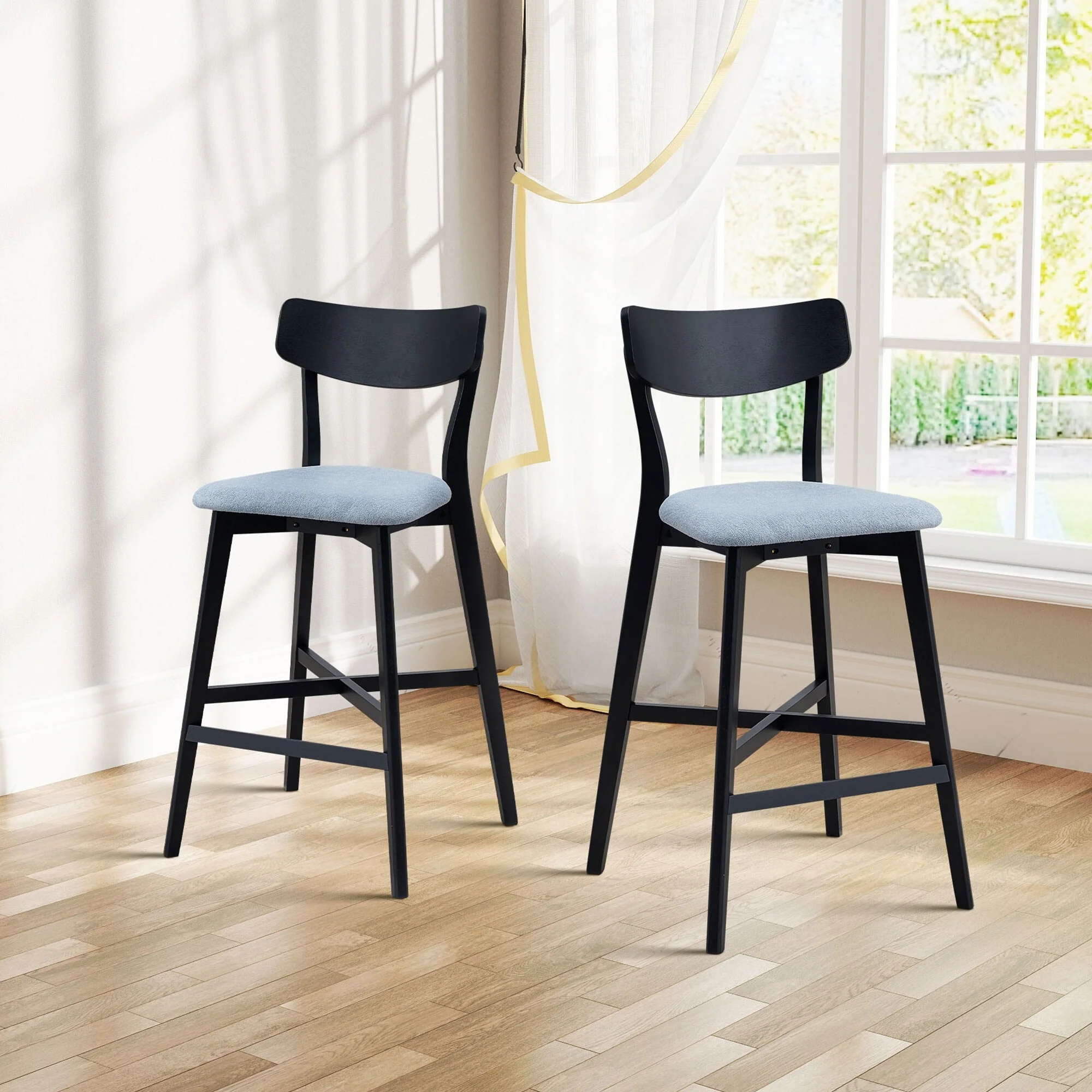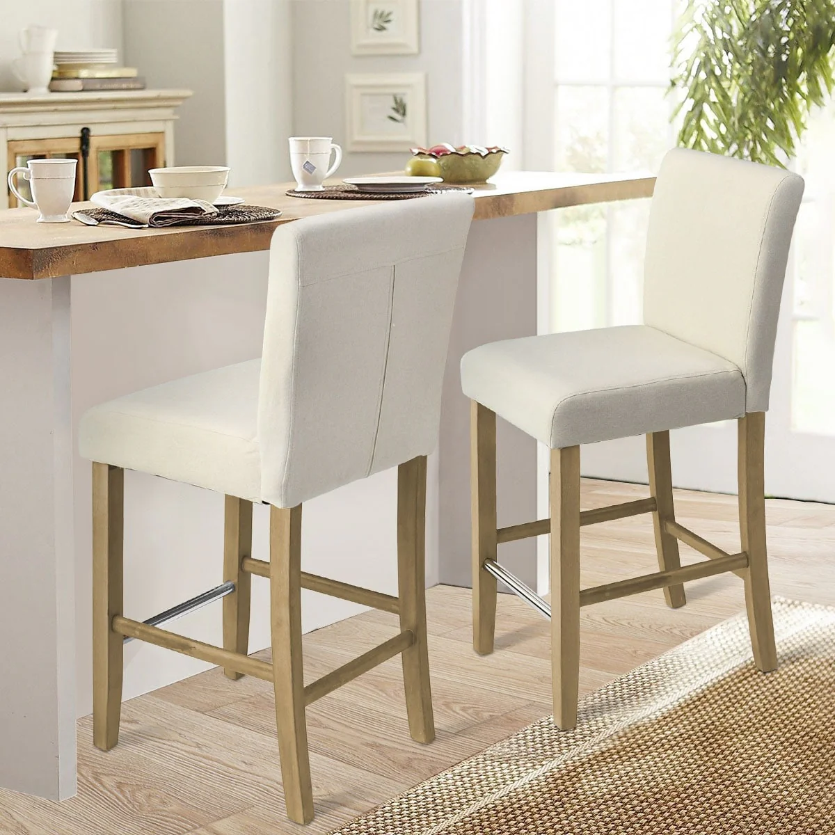 Upholstered Solid Wood 26 Counter Stool, Set of 2