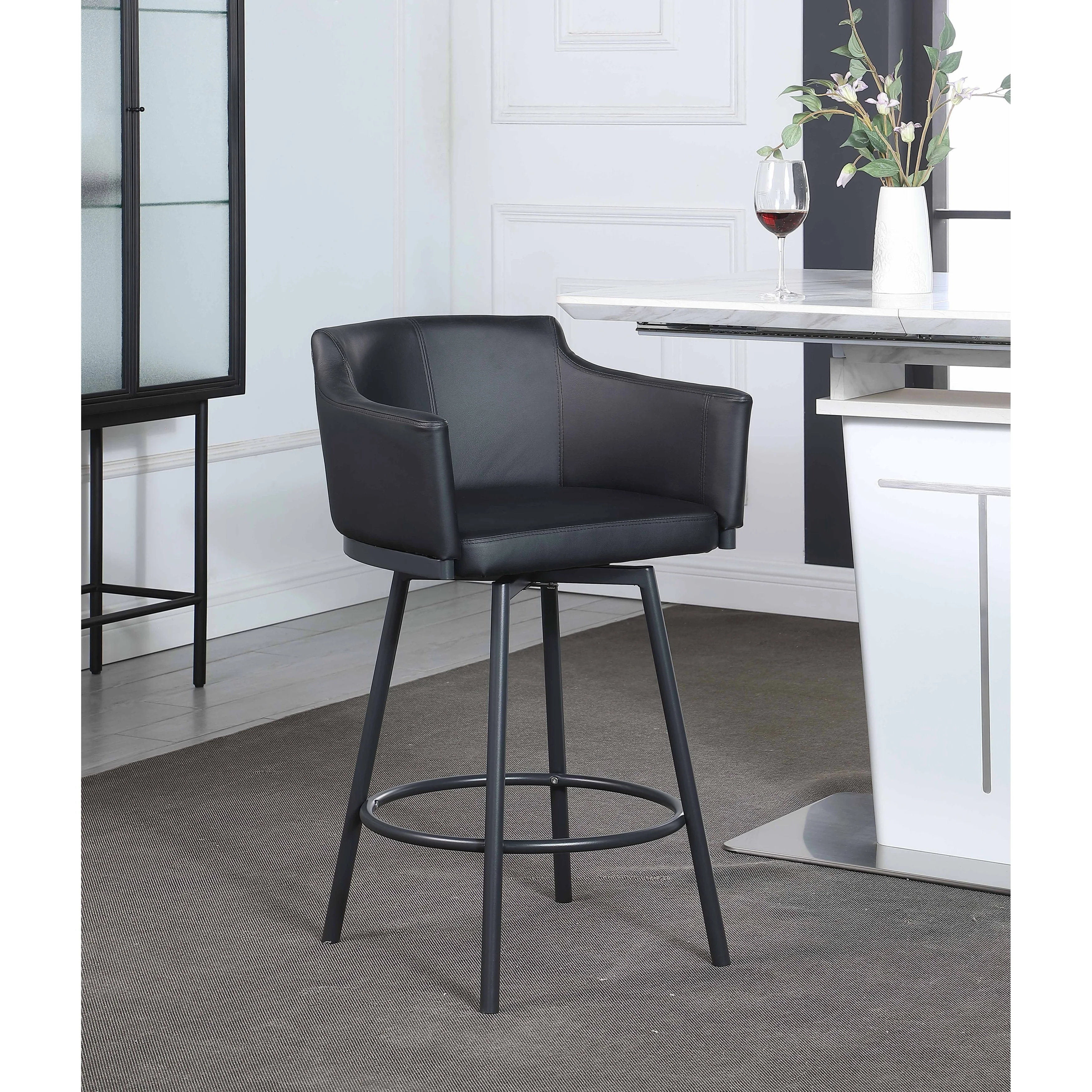 Somette Modern Club Counter Stool with Memory Swivel, Black
