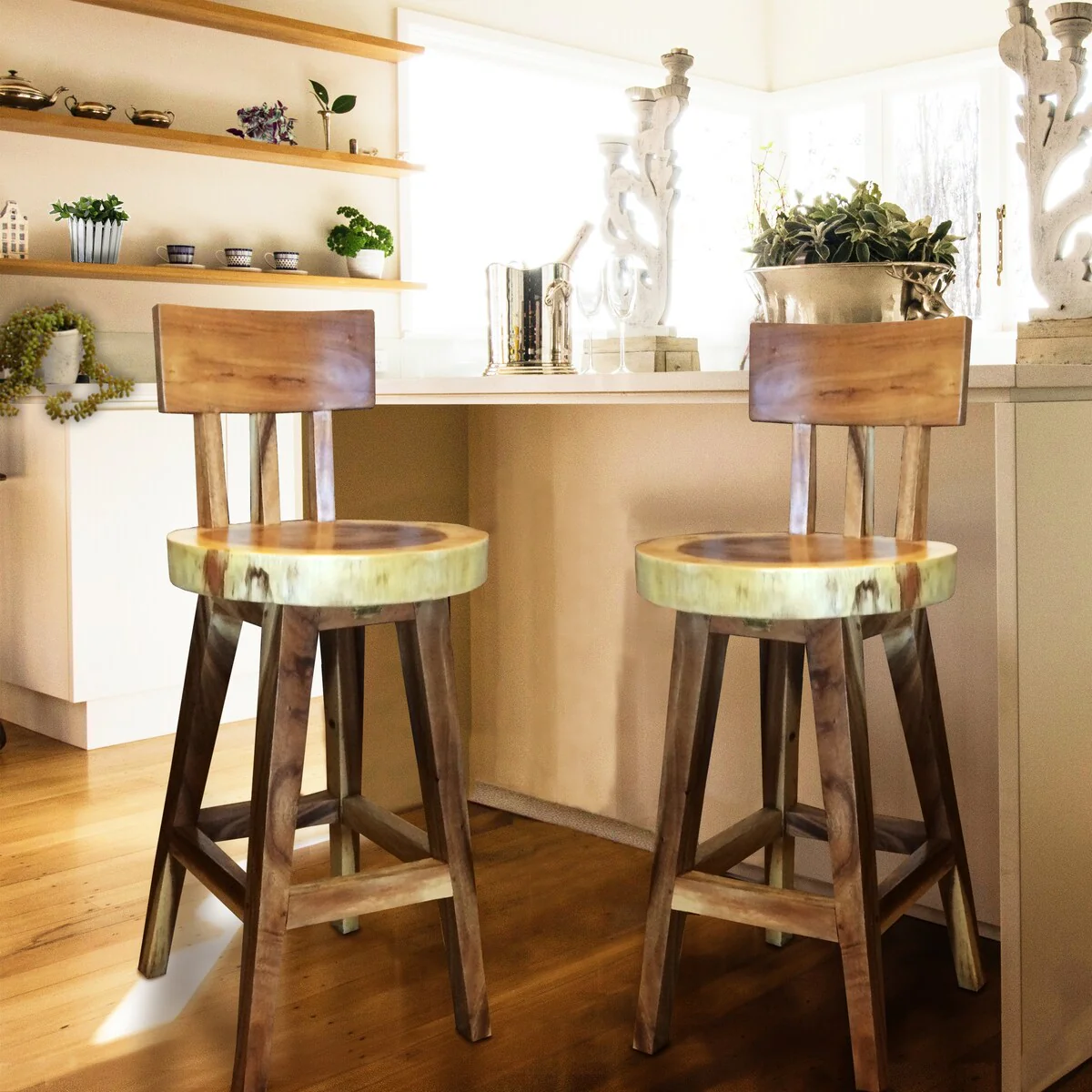Chic Teak Suar Costa Mesa Live Edge Barstool