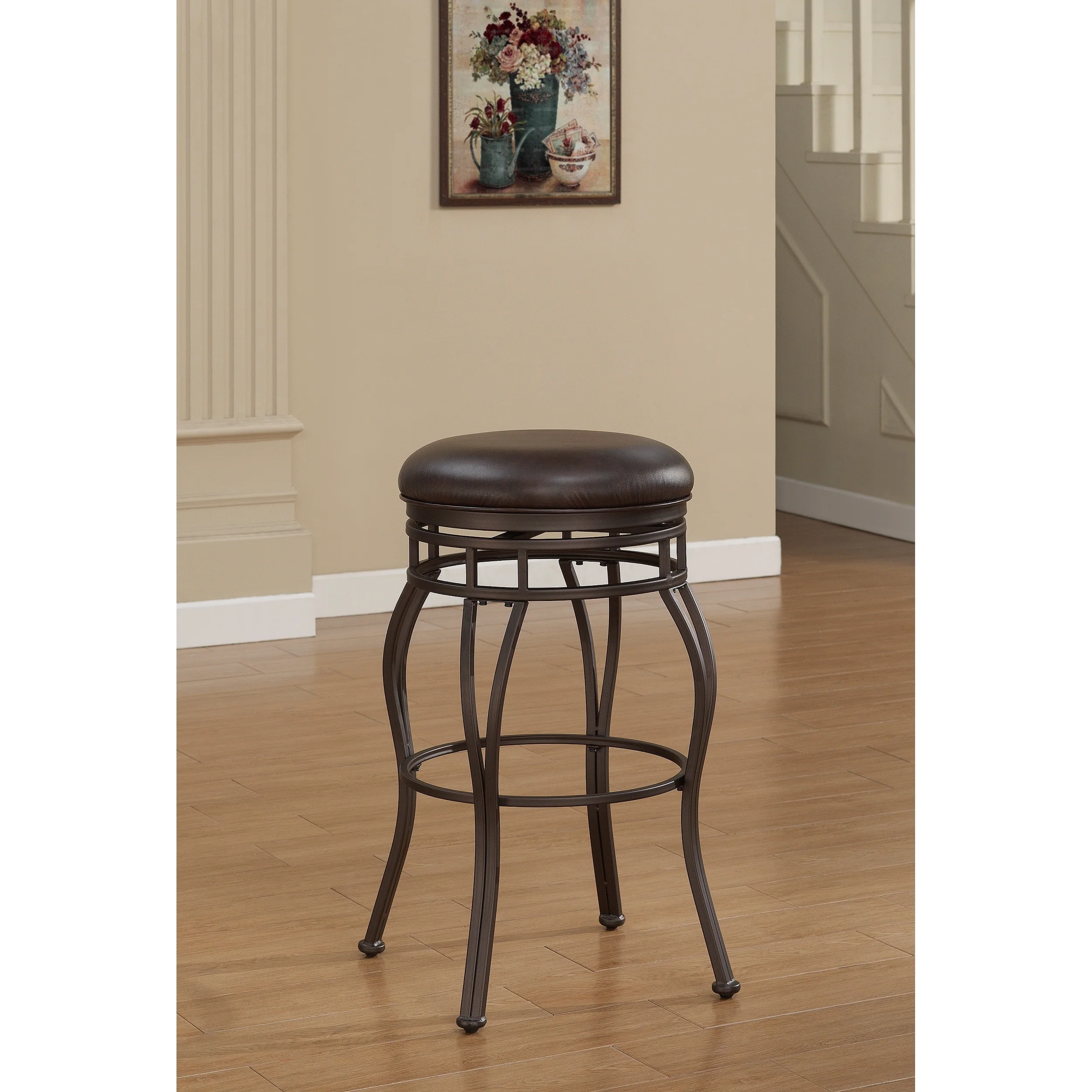 Linon Willamette Backless Faux Leather Brown Counter stool