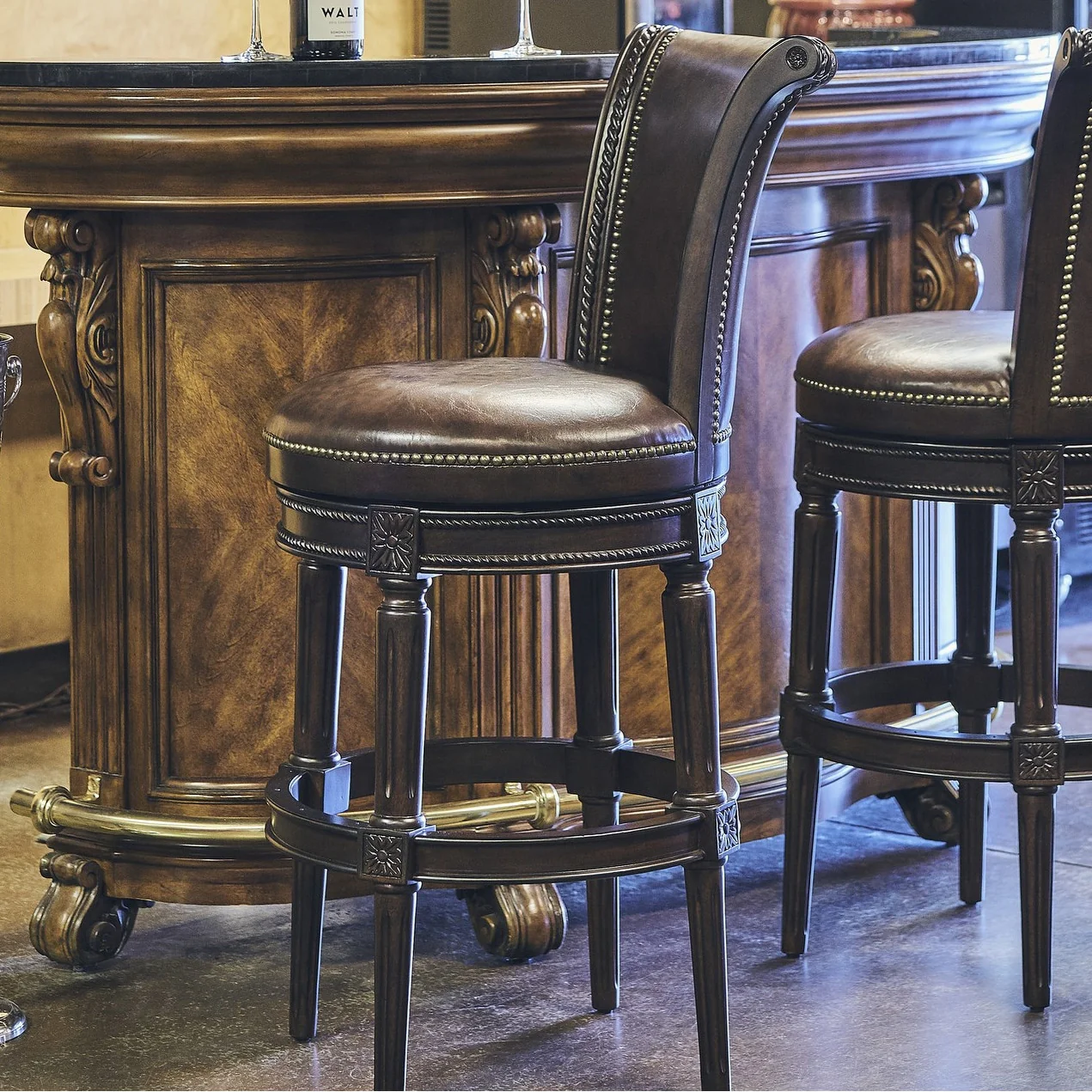 Commercial Upholstered Wooden Swivel Counter Stool