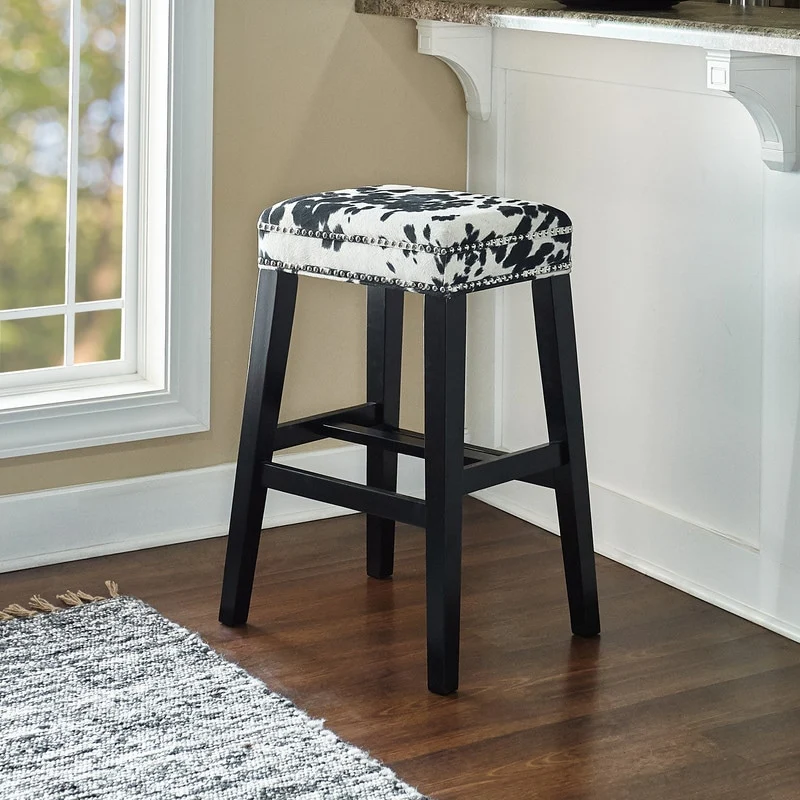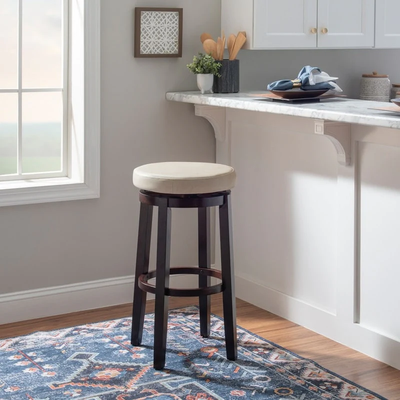Linon Bennery Rice Faux Leather Backless Swivel Bar Stool
