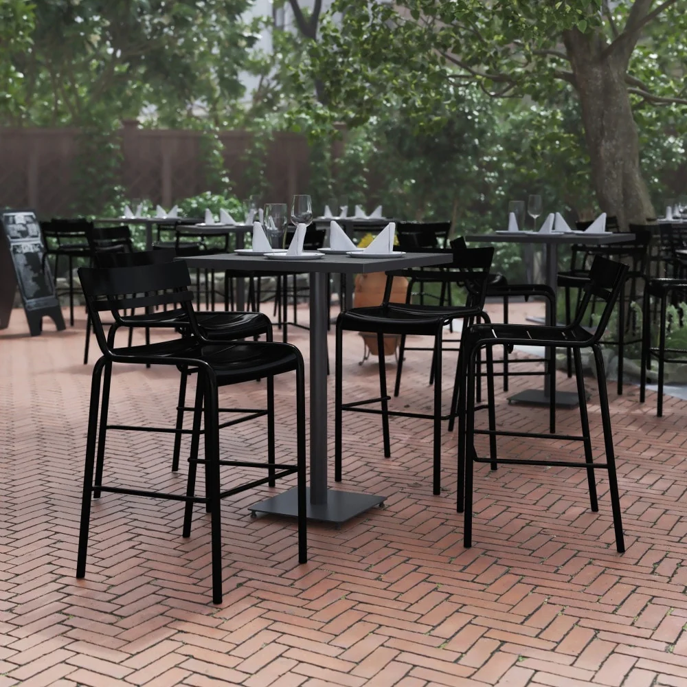 4PK Modern Commercial Grade 2 Slat Indoor/Outdoor Steel Bar Stool