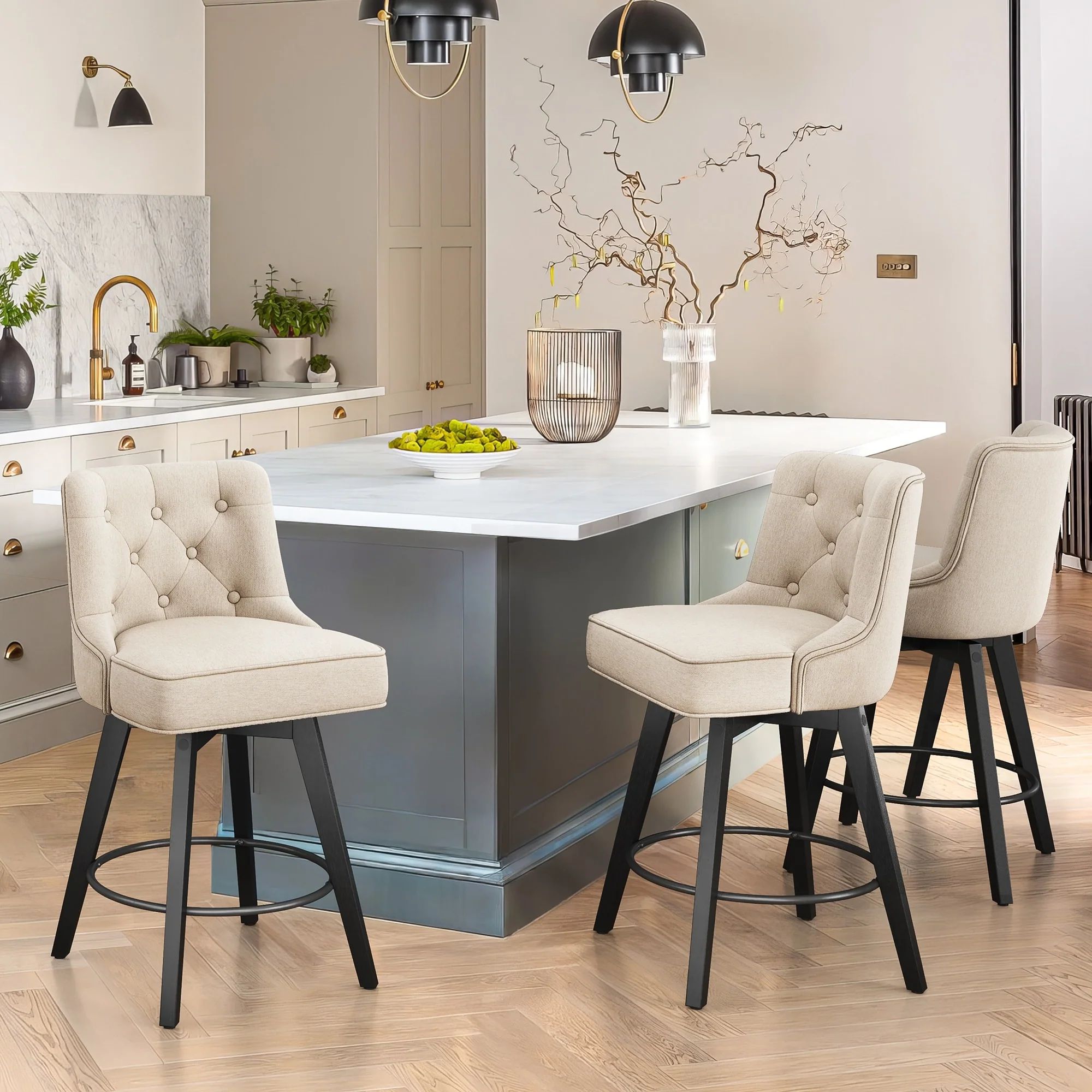 Golden Swivel Velvet Barstools