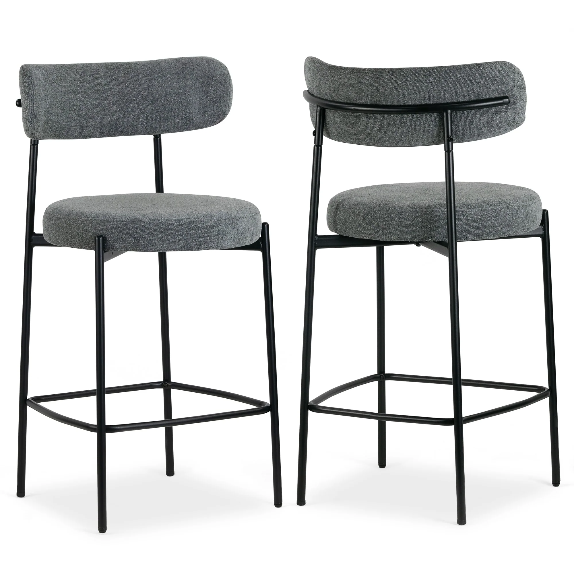 Set of 2 Awen Gray Boucle Counter Stool with Black Legs