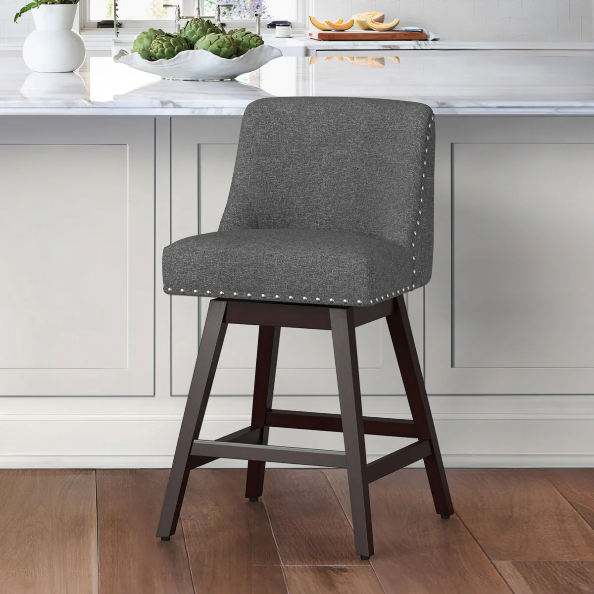 Leather Upholstered Wooden 360 Degrees Swivel Barstool with Back