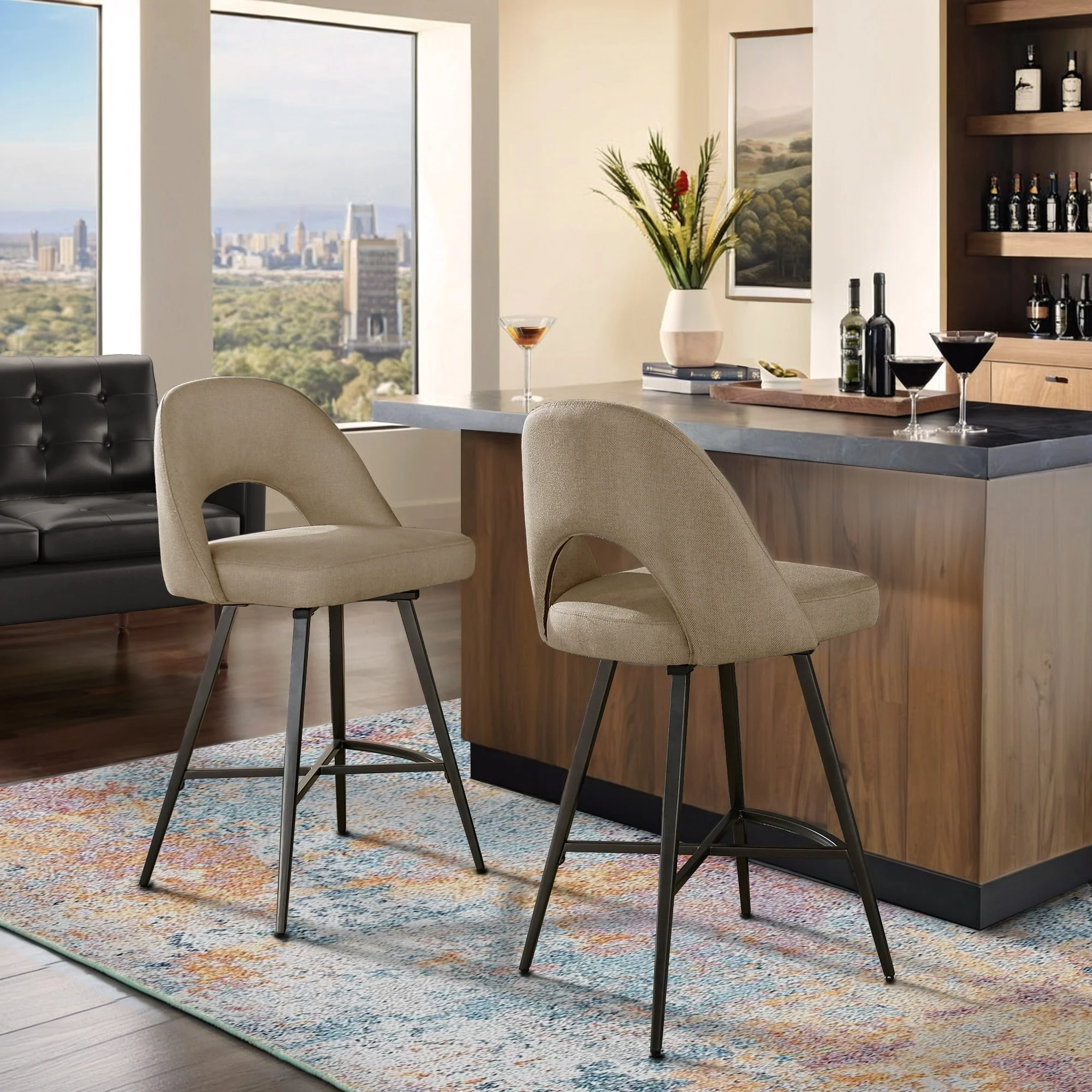 Art Leon Set of 2 Upholstered Counter Height Swivel Barstool
