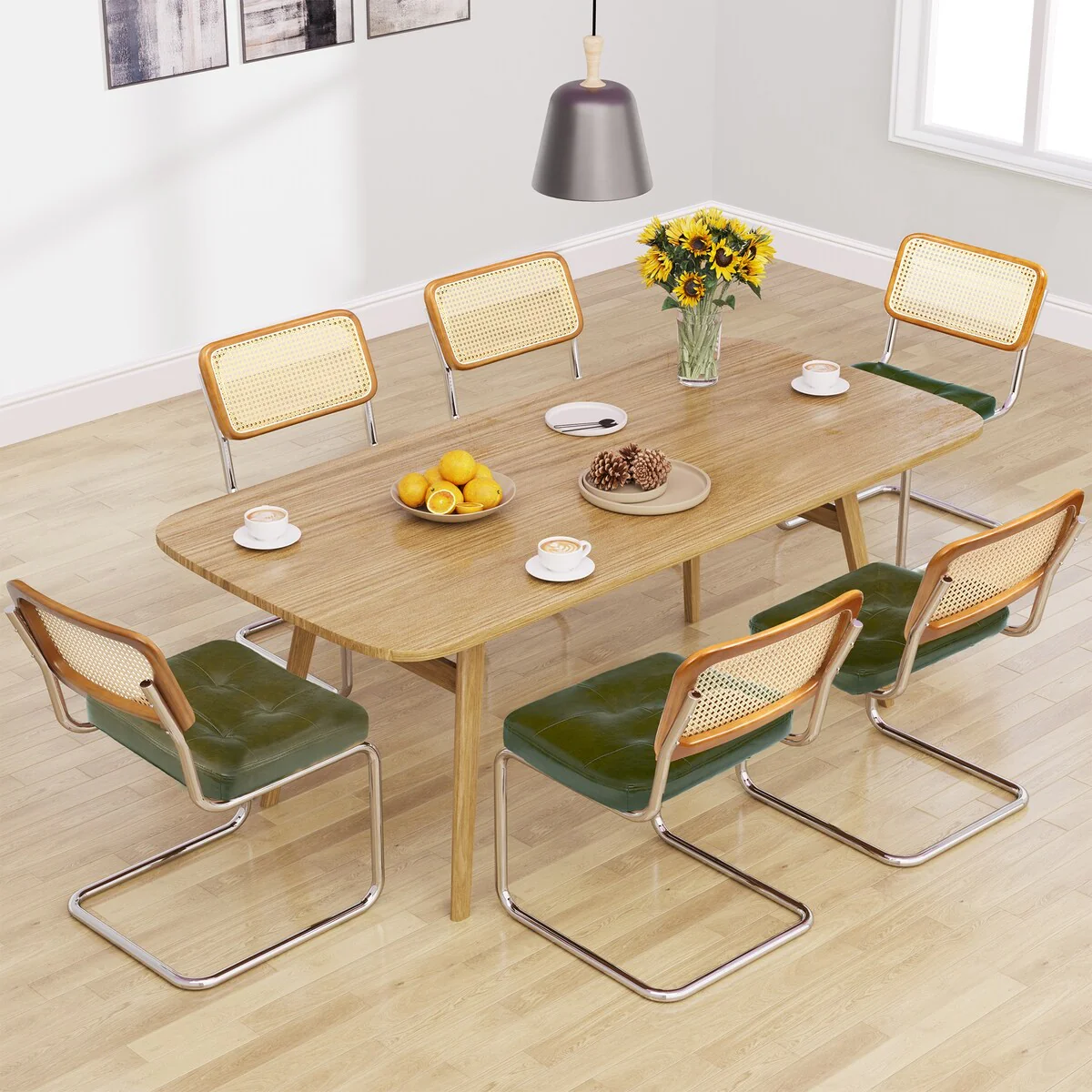 Moasis Rattan Back Faux Leather Hunter Green Dining Chairs