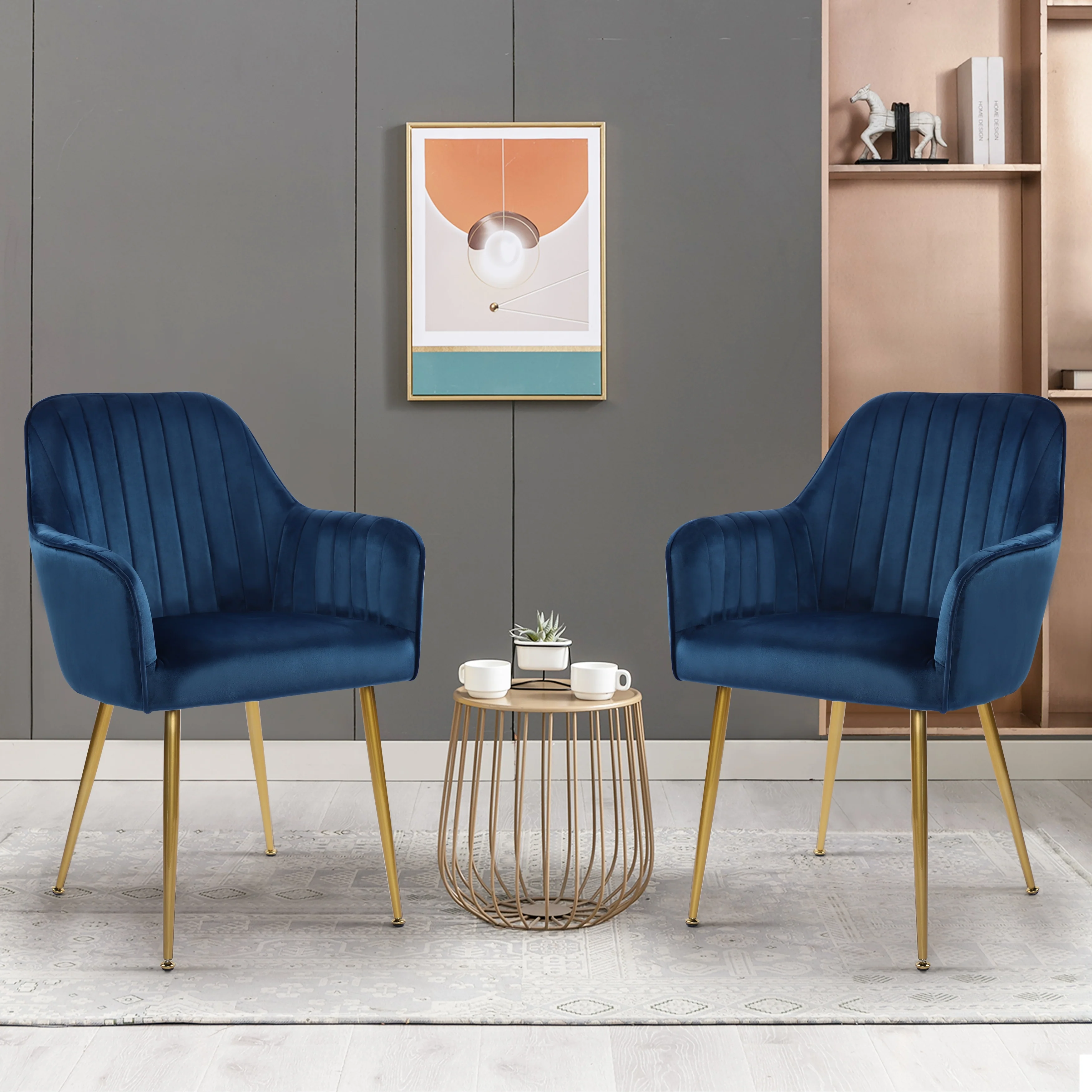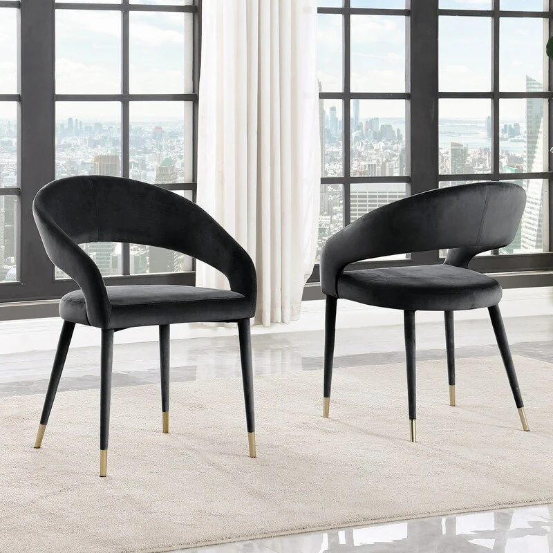 Velvet Accent Dining Chairs with Gold Metal Legs Set of 2