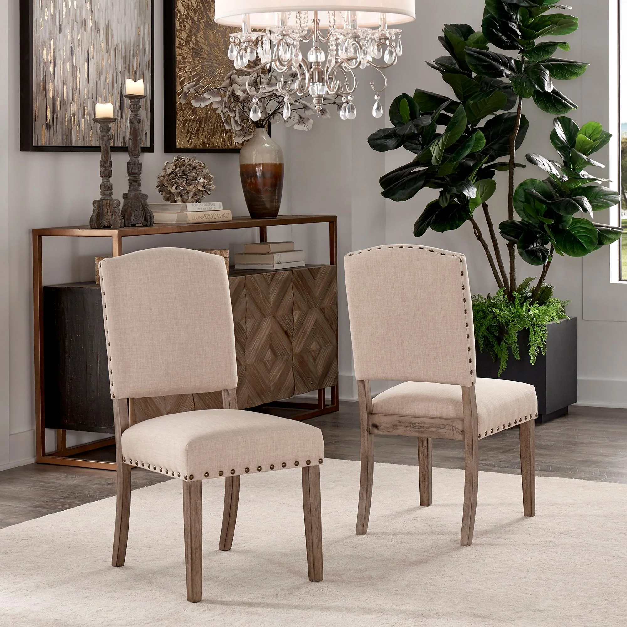 Krakova Linen Nailhead Chairs (Set of 2)