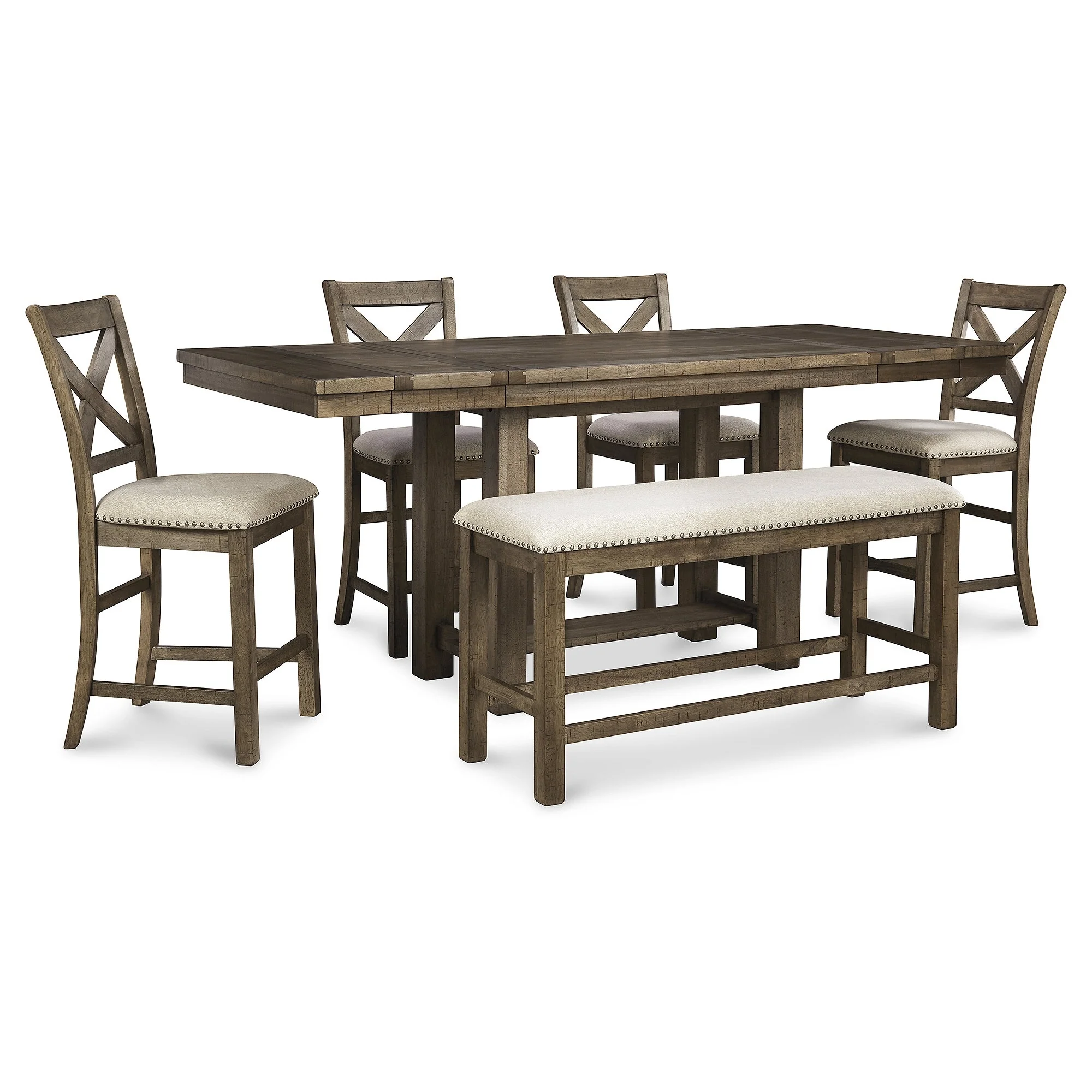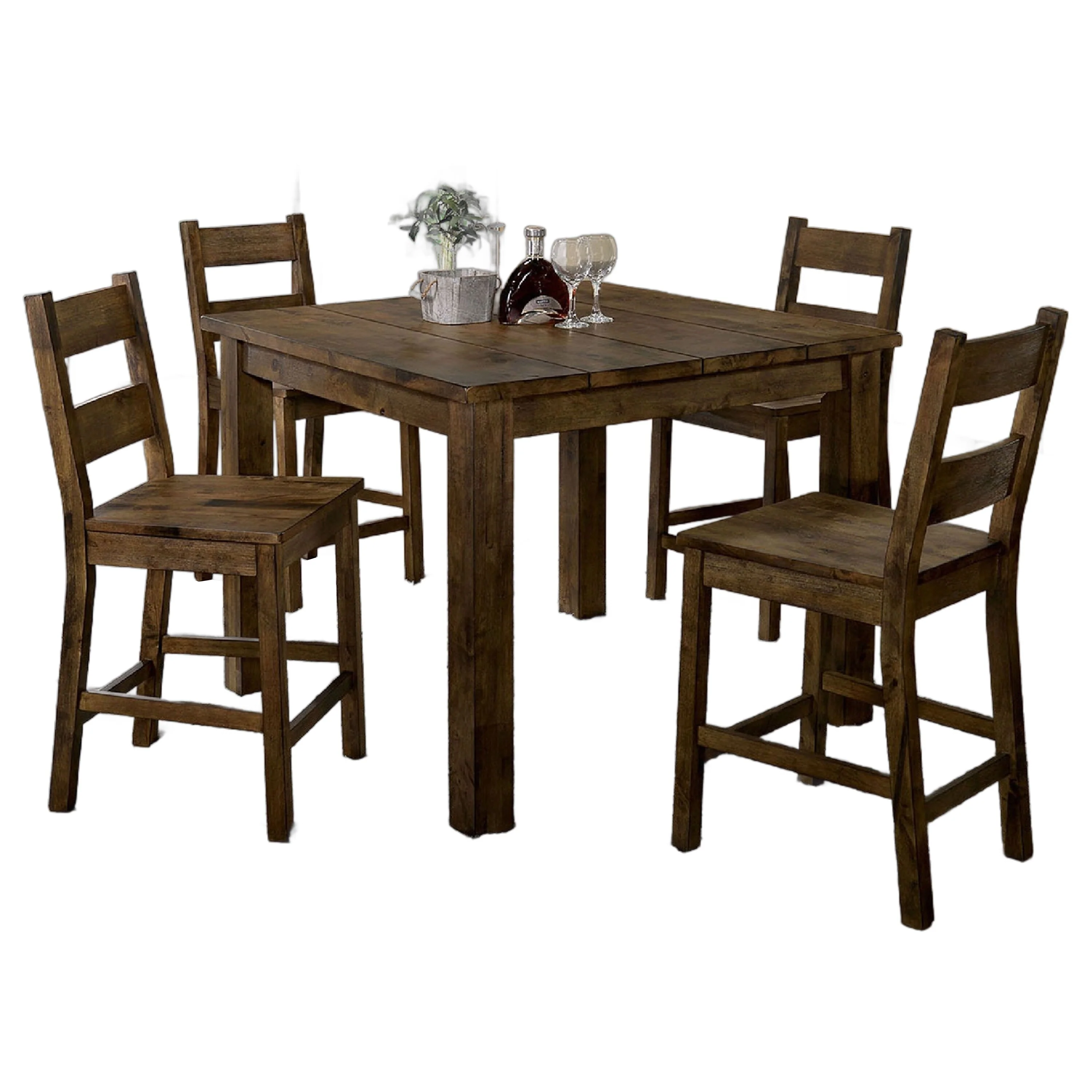Kris 5pc Counter Height Table Set, 4 Chairs, Rustic Oak Brown Wood