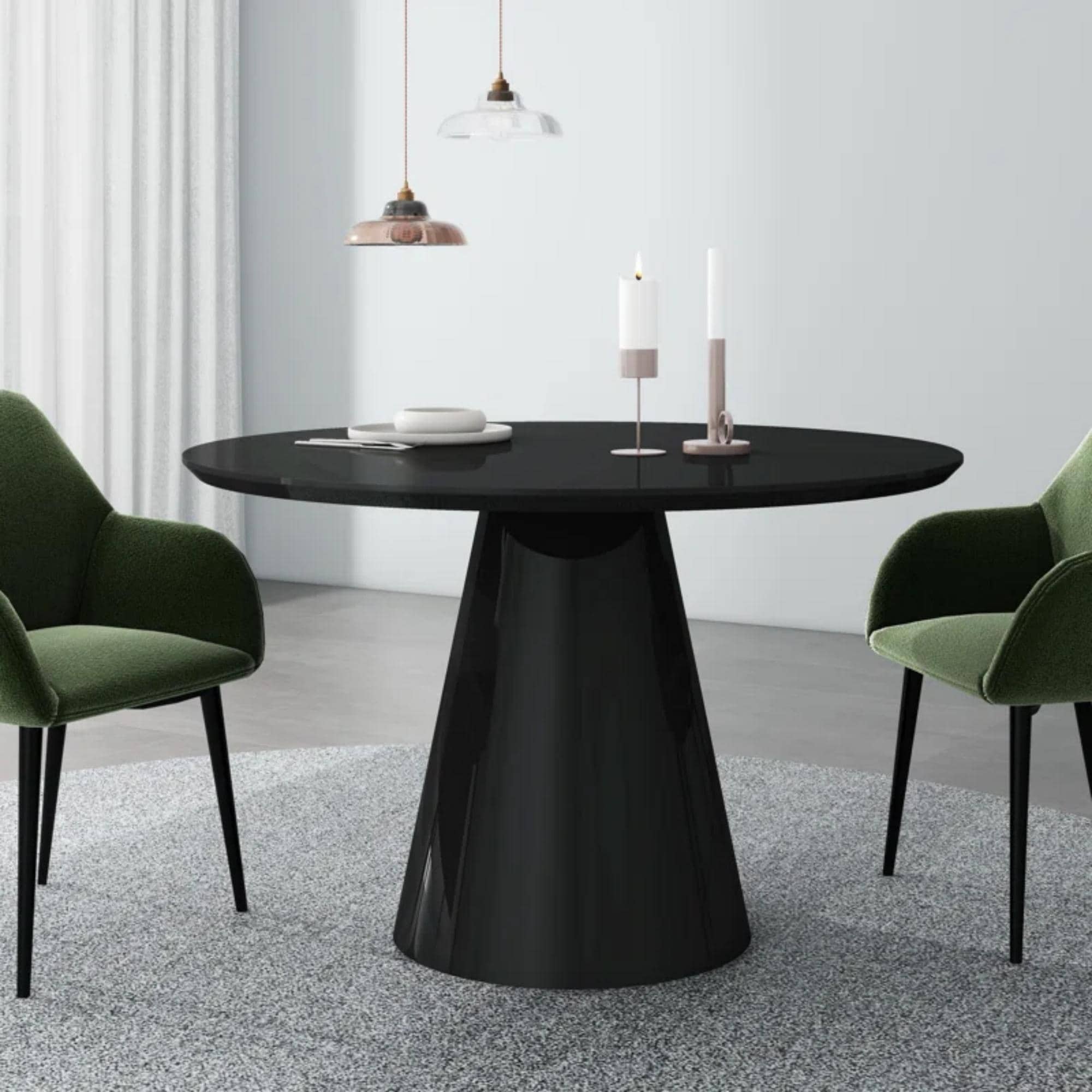 Modern Dining Table with Round Table Top & Metal Base