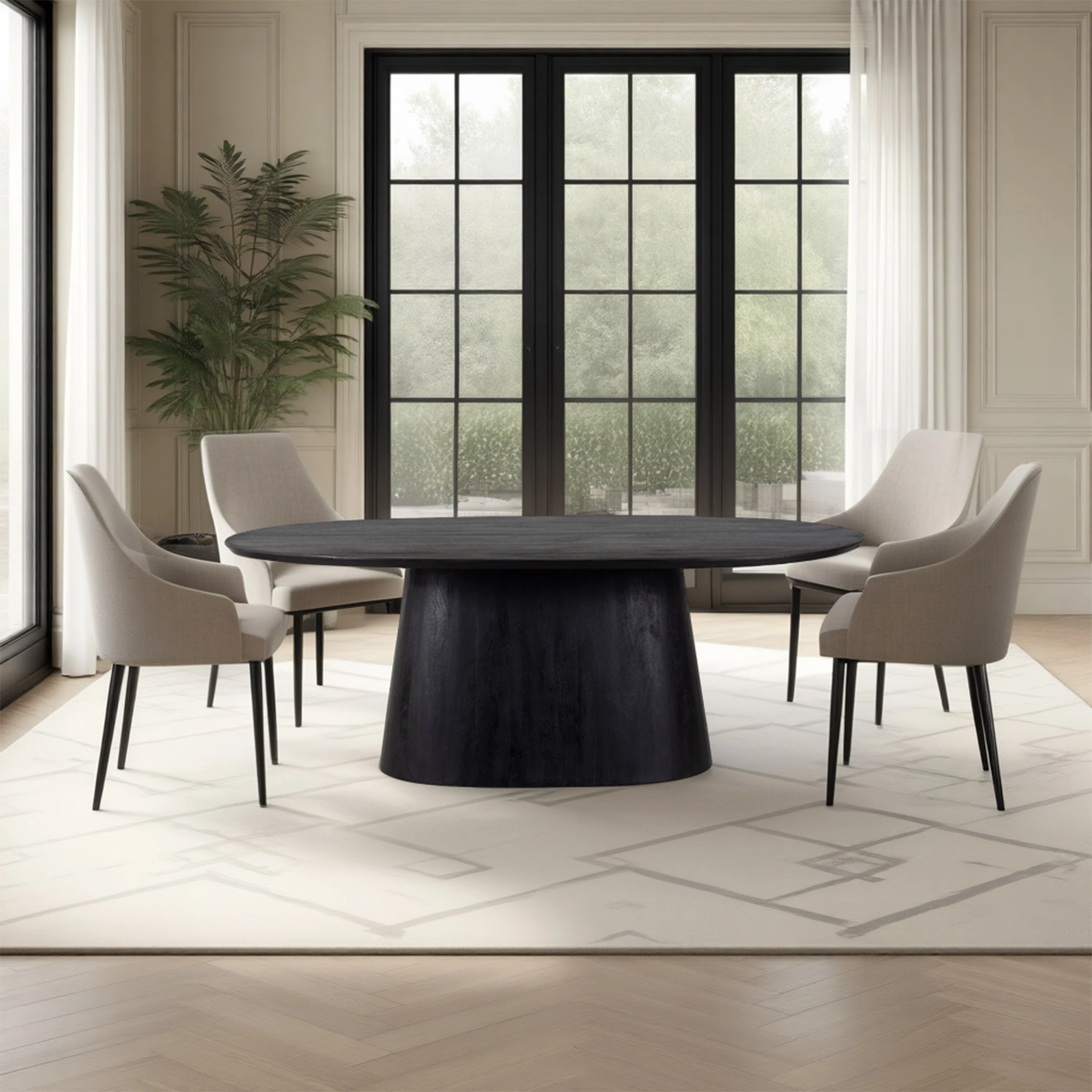 Eve Dining Table, Flared Legs, Dark Walnut Wood, Round 53 Inch Top