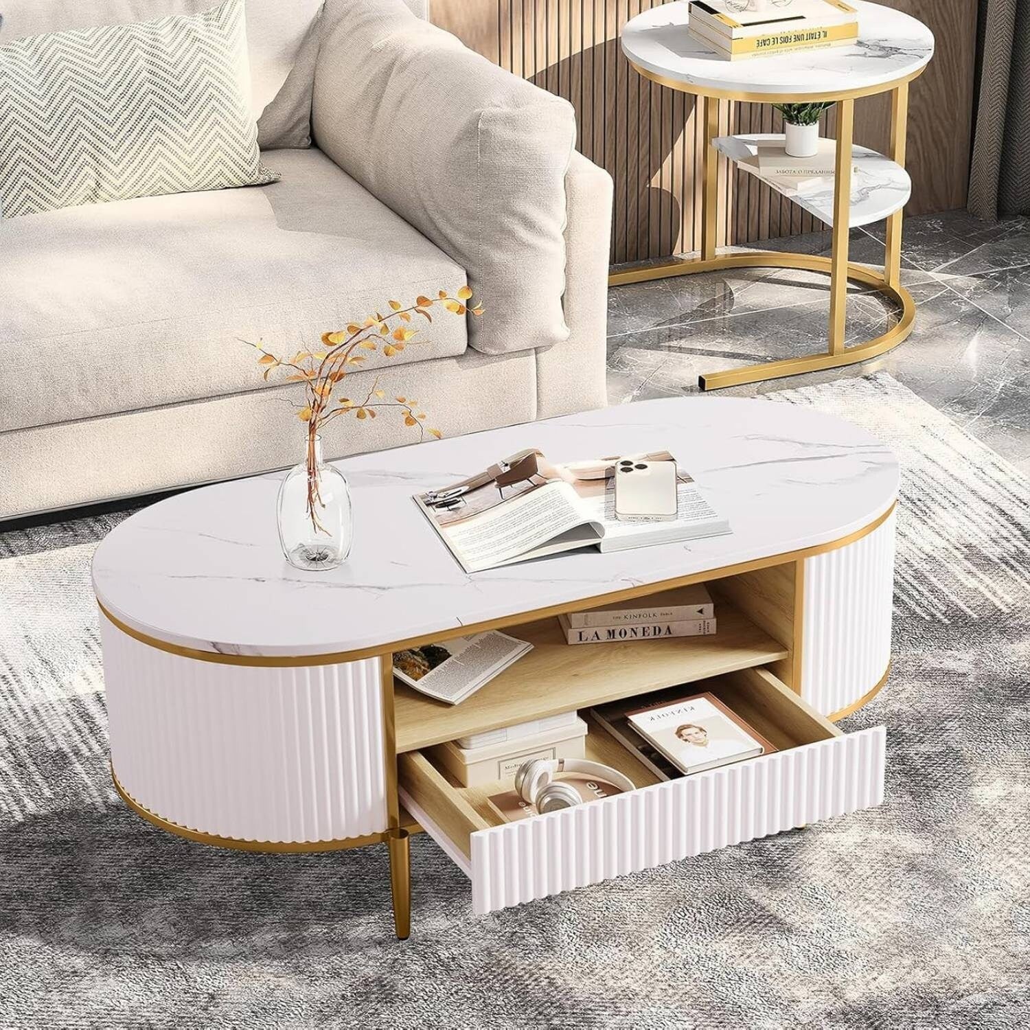 Modern Oval Coffee Table with Drawers for Living Room - N/A