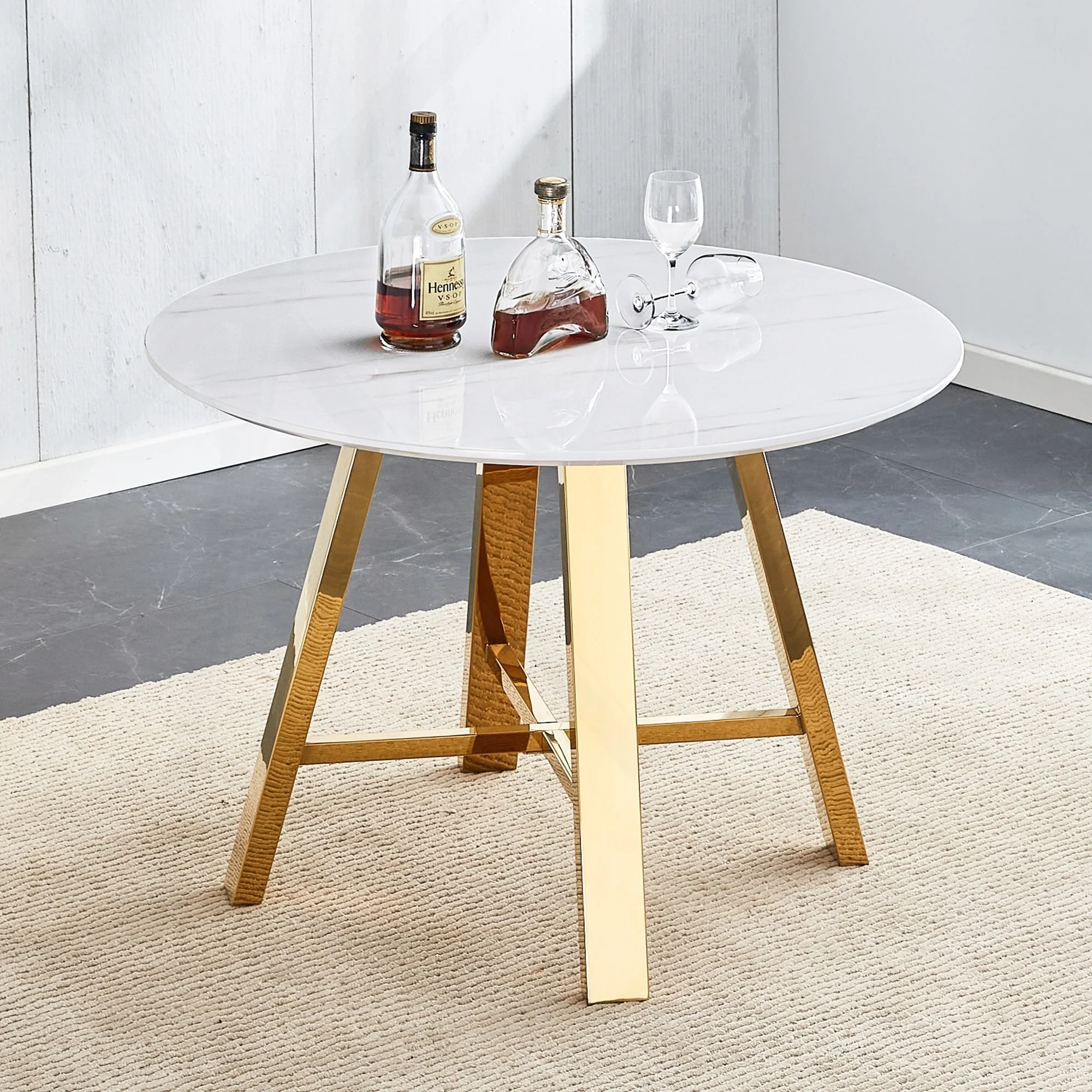 Minimalist Circular Dining Table with Sturdy Metal Legs