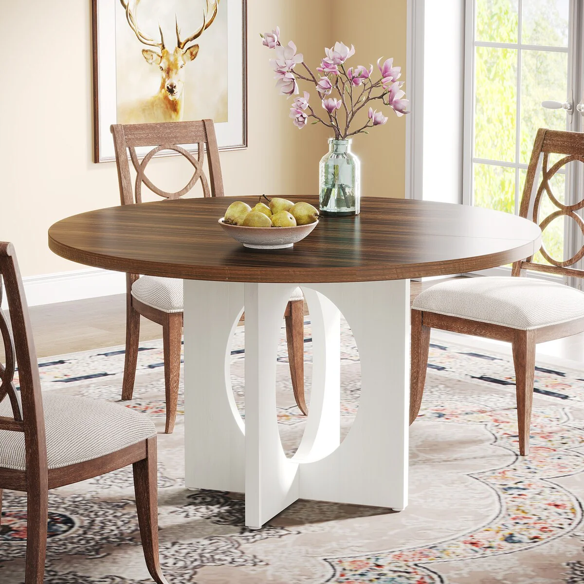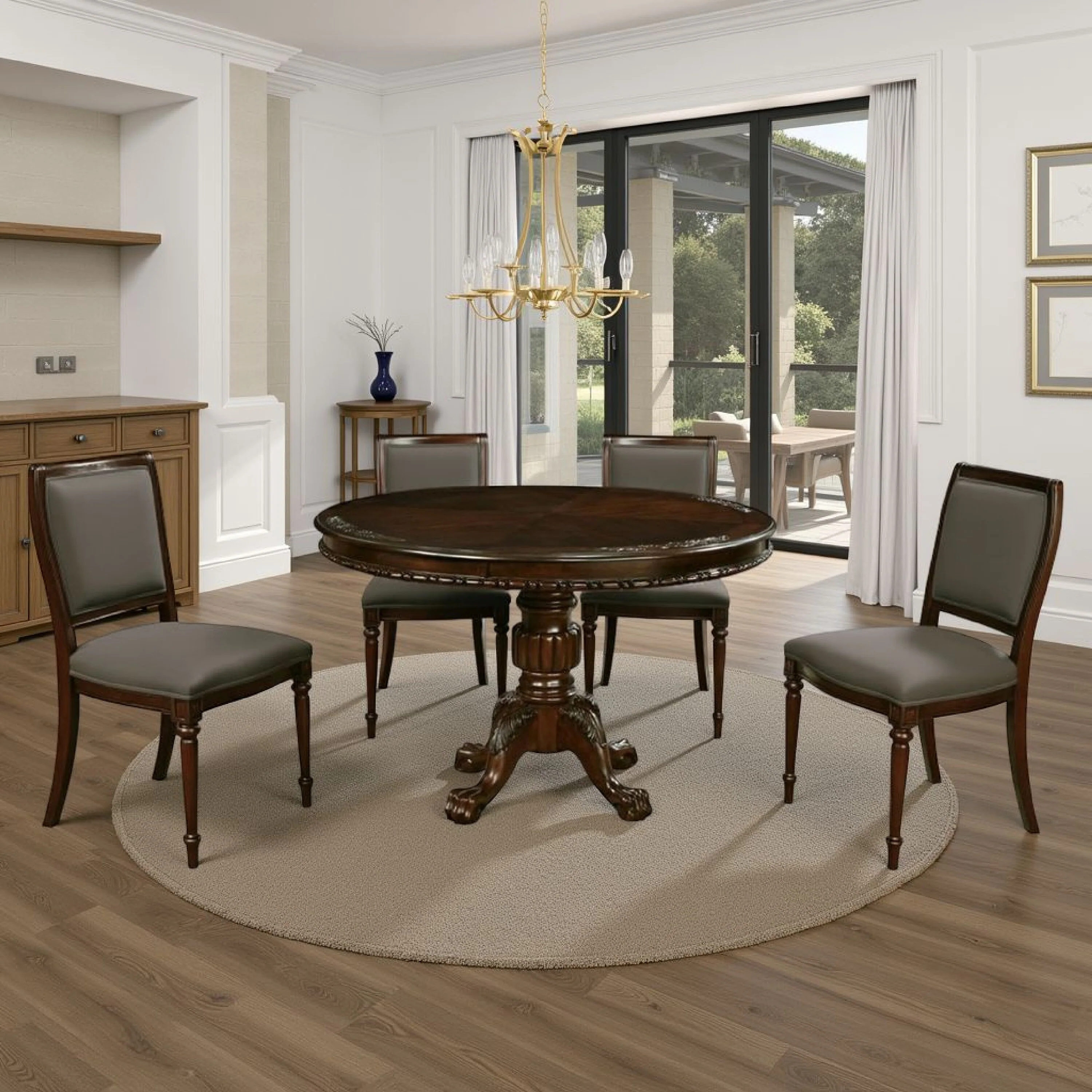Mina Dining Table, 48 Inch Round Cherry Brown Top w Pedestal Base
