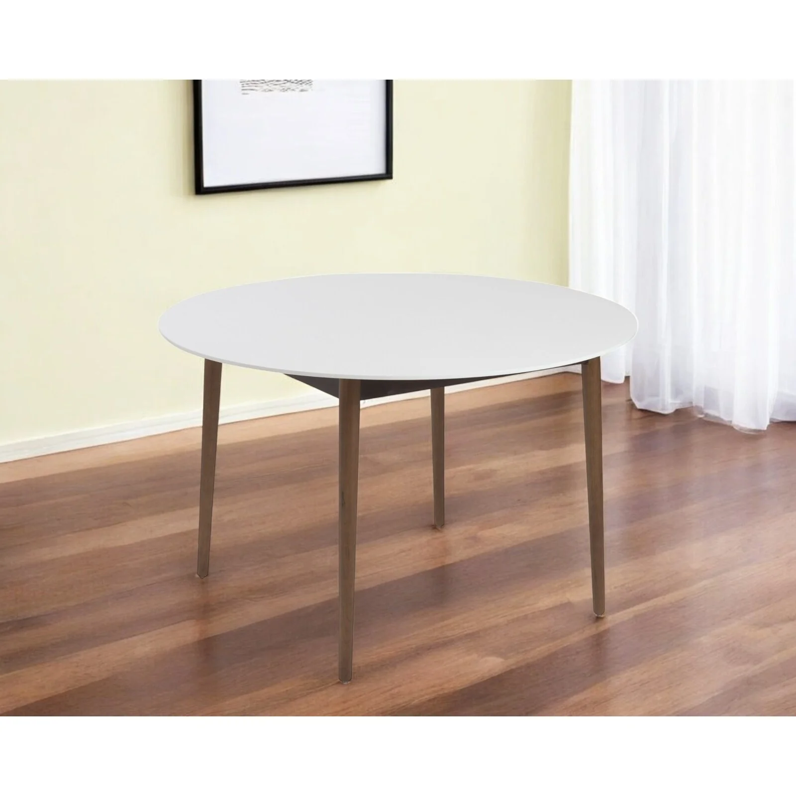 HomeRoots 47 White and Brown Rounded Dining Table