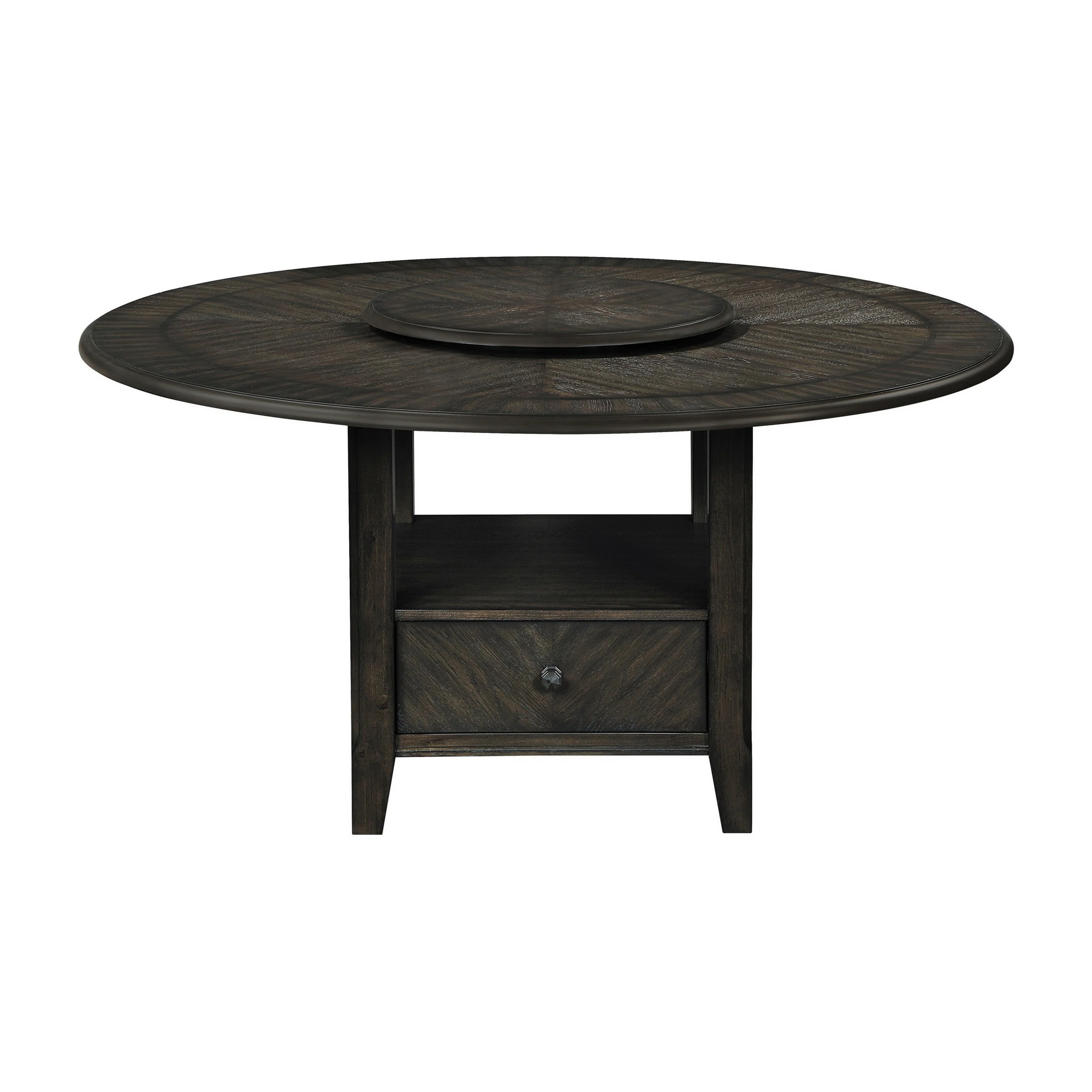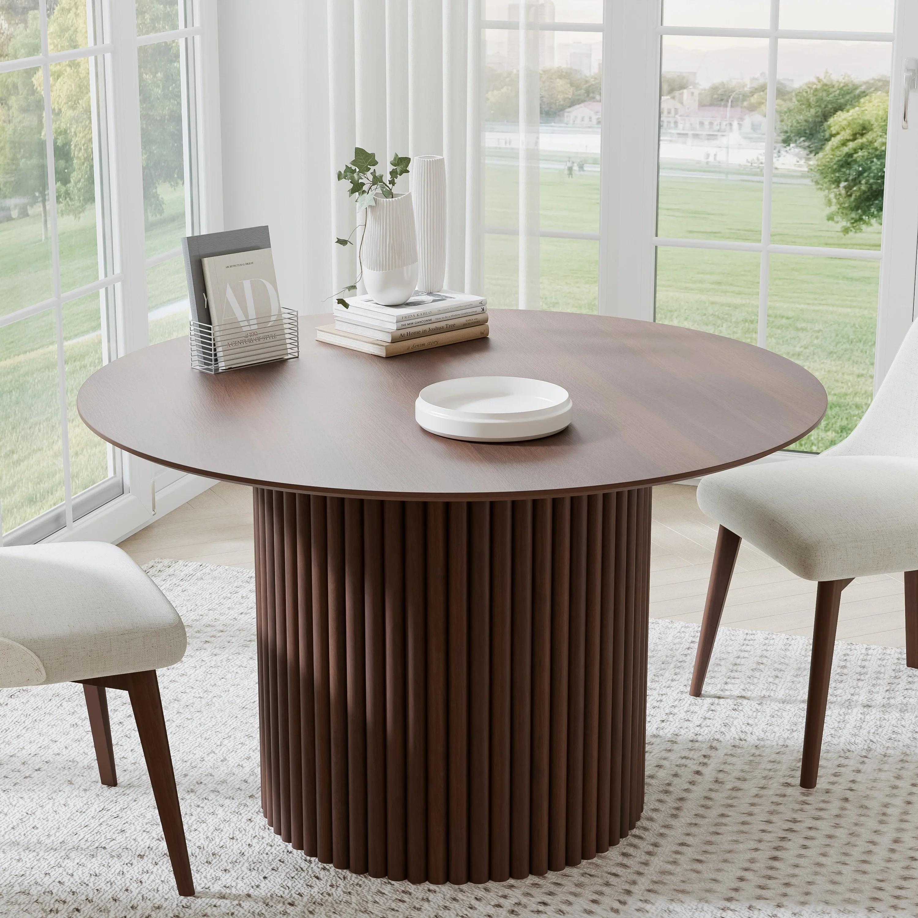 Koko Dining Table, 48 Inch Round Top, Dark Walnut Brown Rubberwood