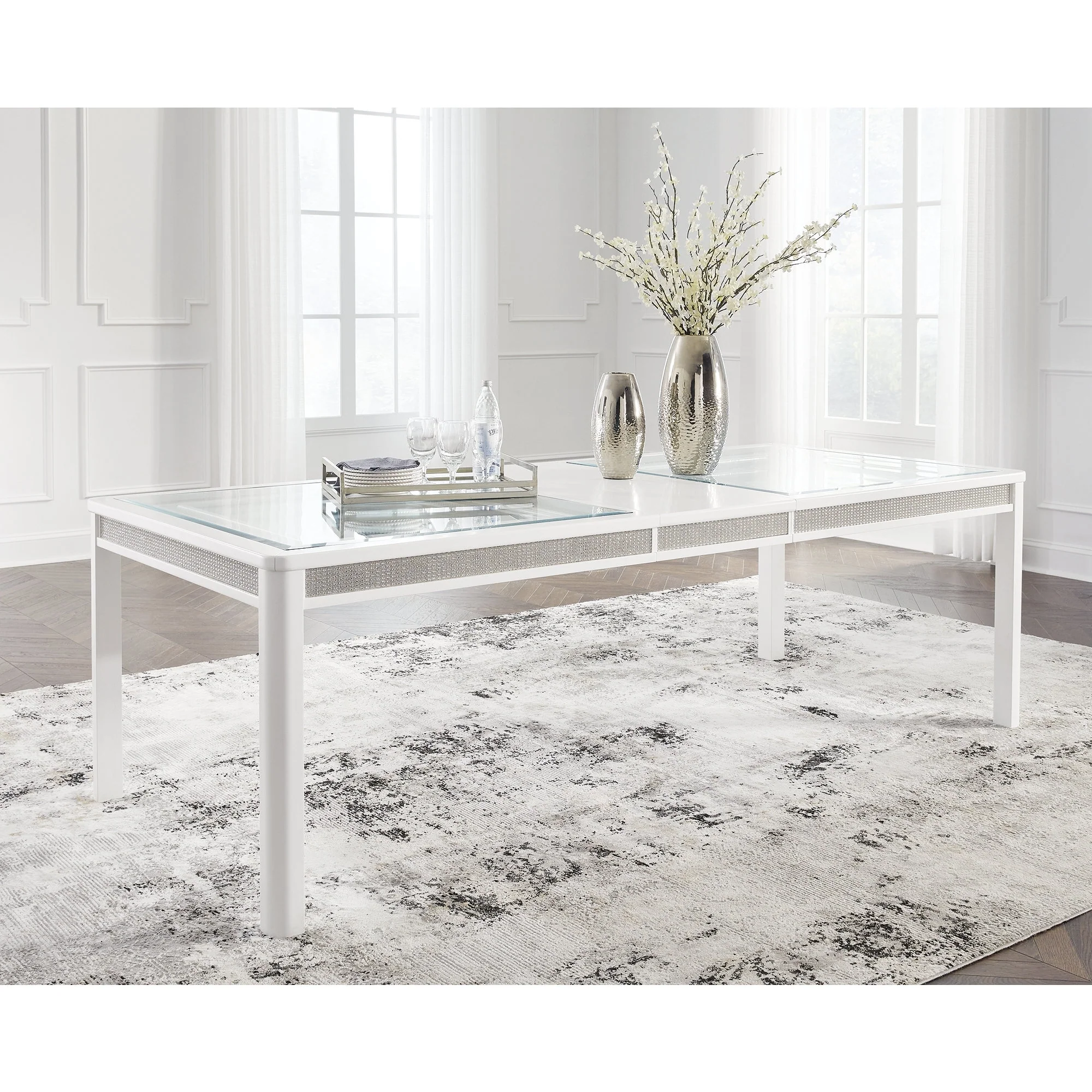Liela Oval Dining Table, Double Pedestal Base, Bone White 87 Inch