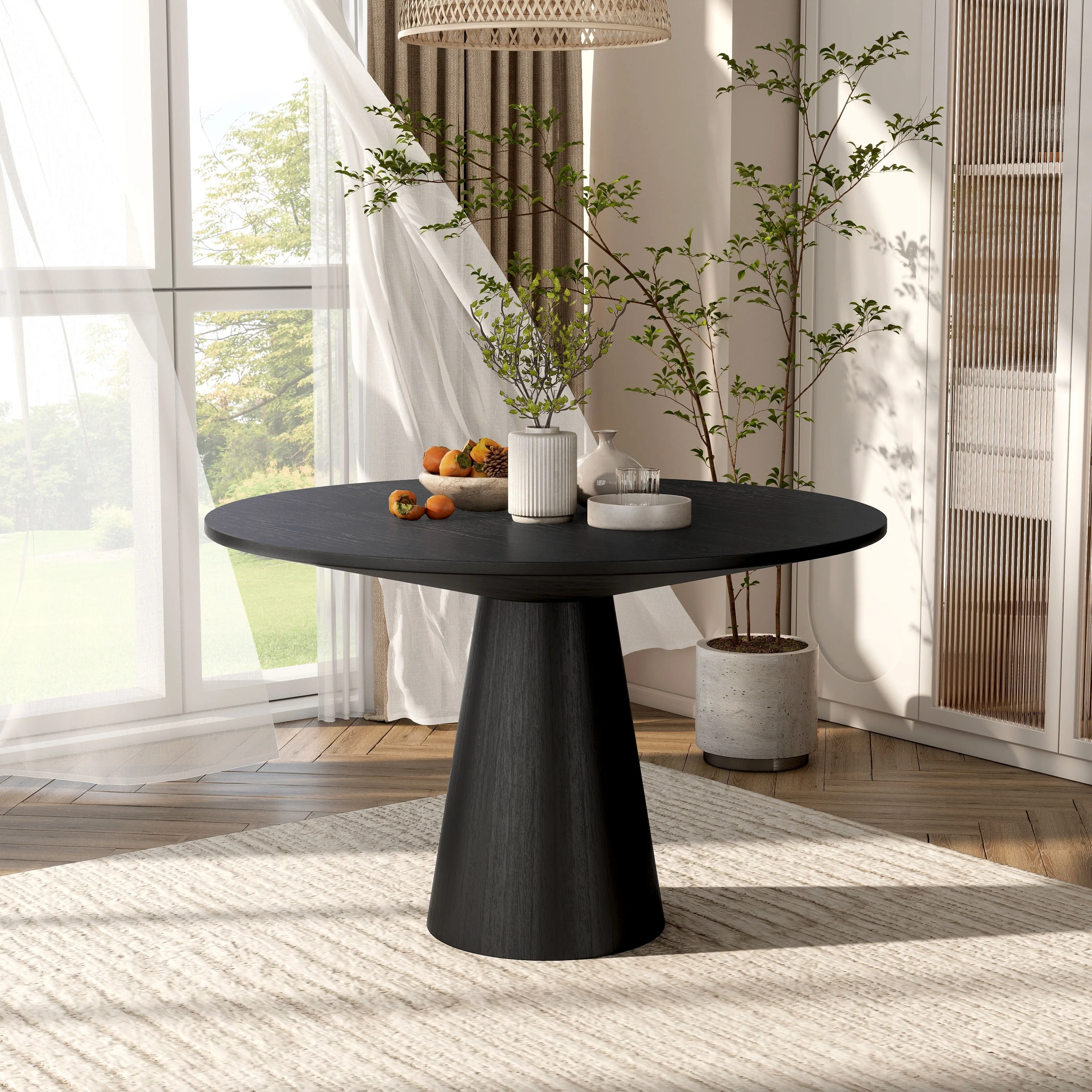 60-inch Round Wooden Dining Table with Pedestal Base in Oak