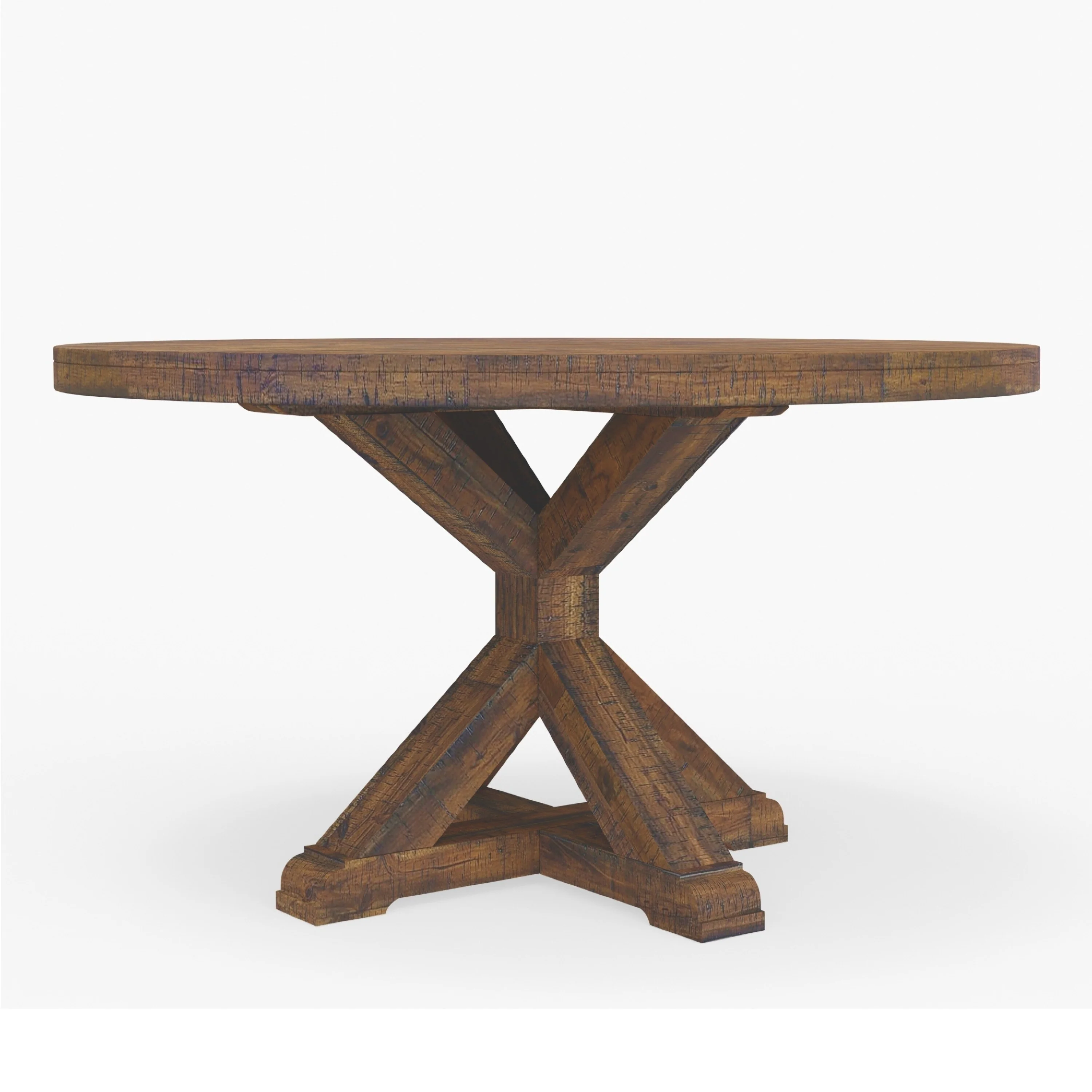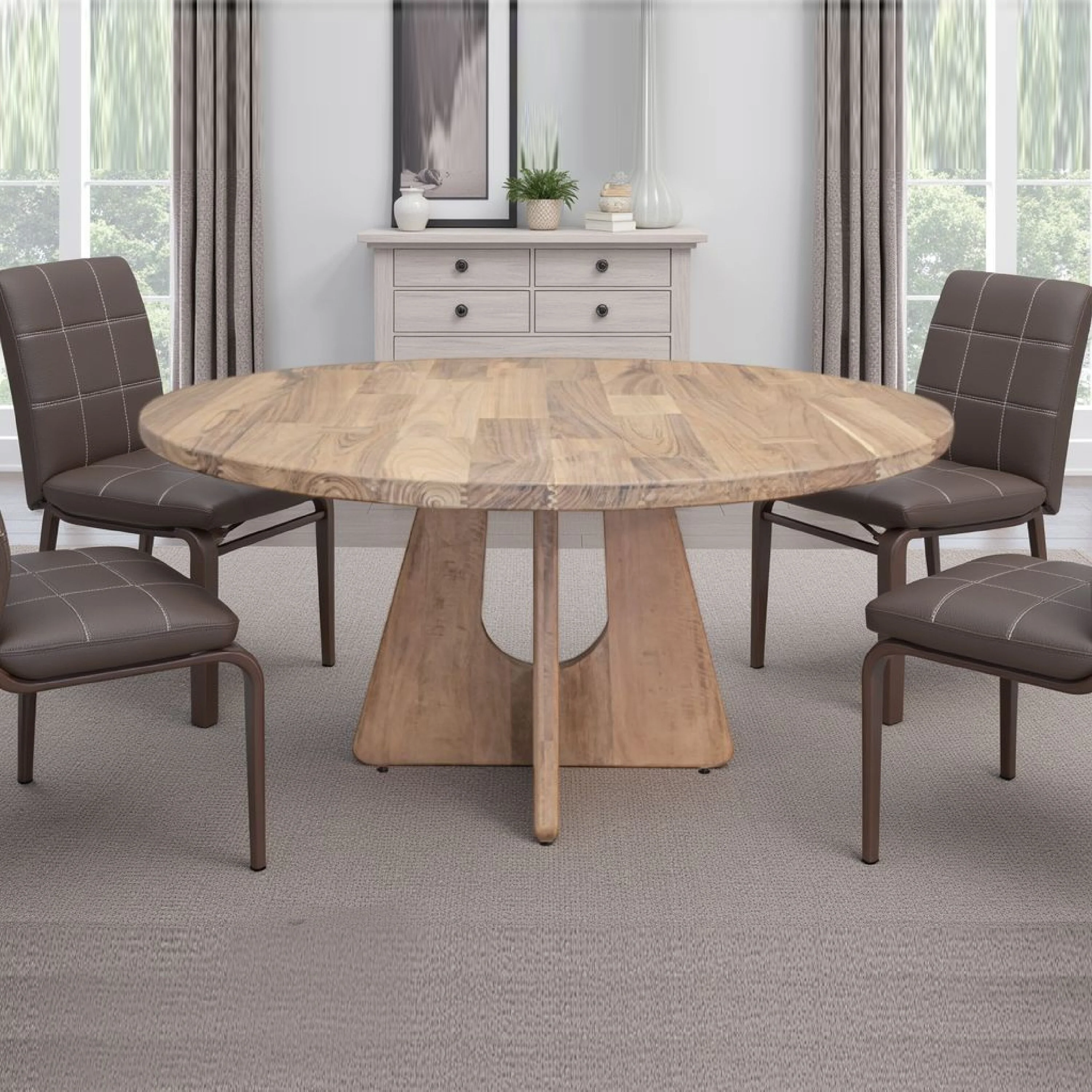 Umey Dining Table, 59 Inch Round Top w Cross Base, Brown Mango Wood