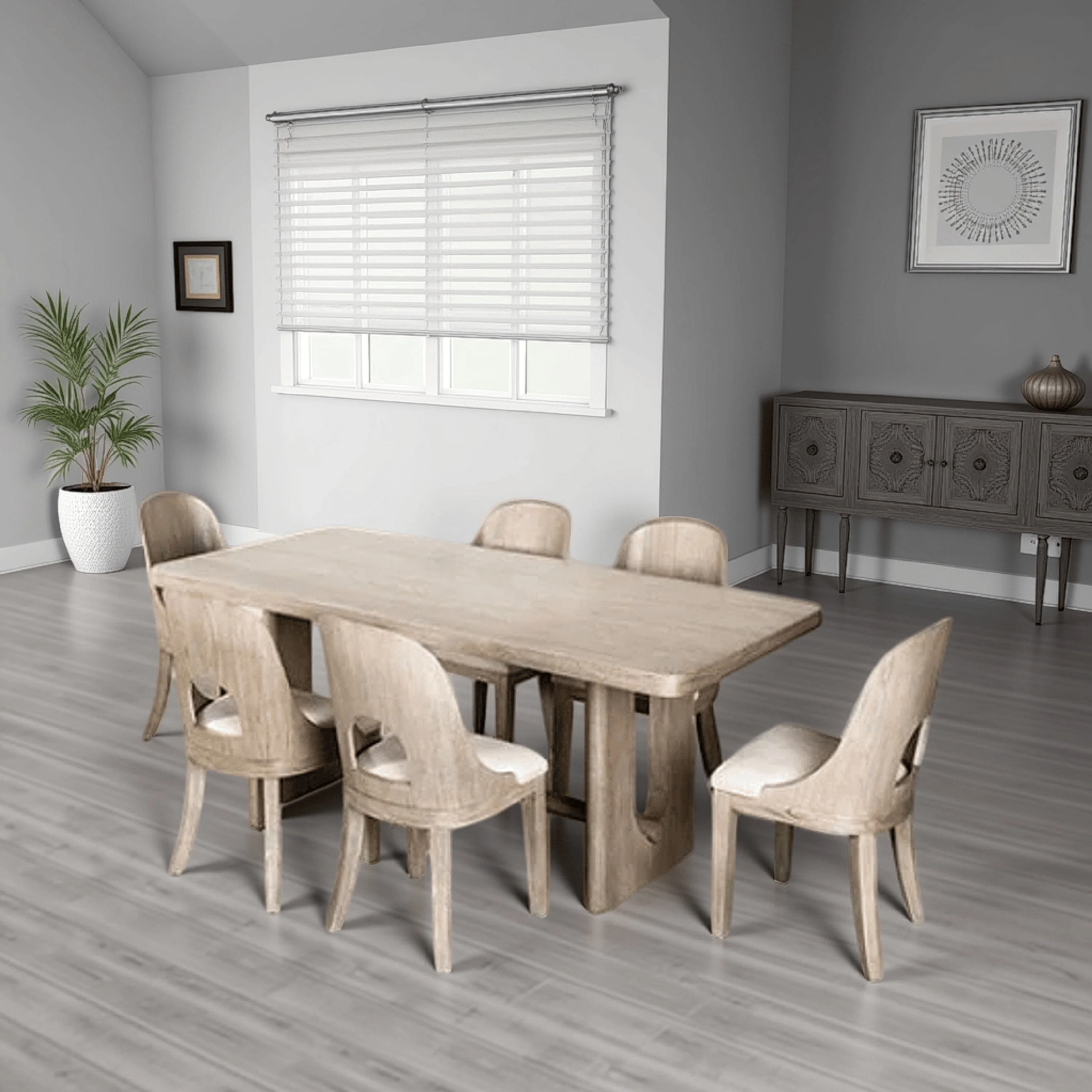 Zoko Dining Table, Pedestal Base, Classic White Wash Wood 83 Inch