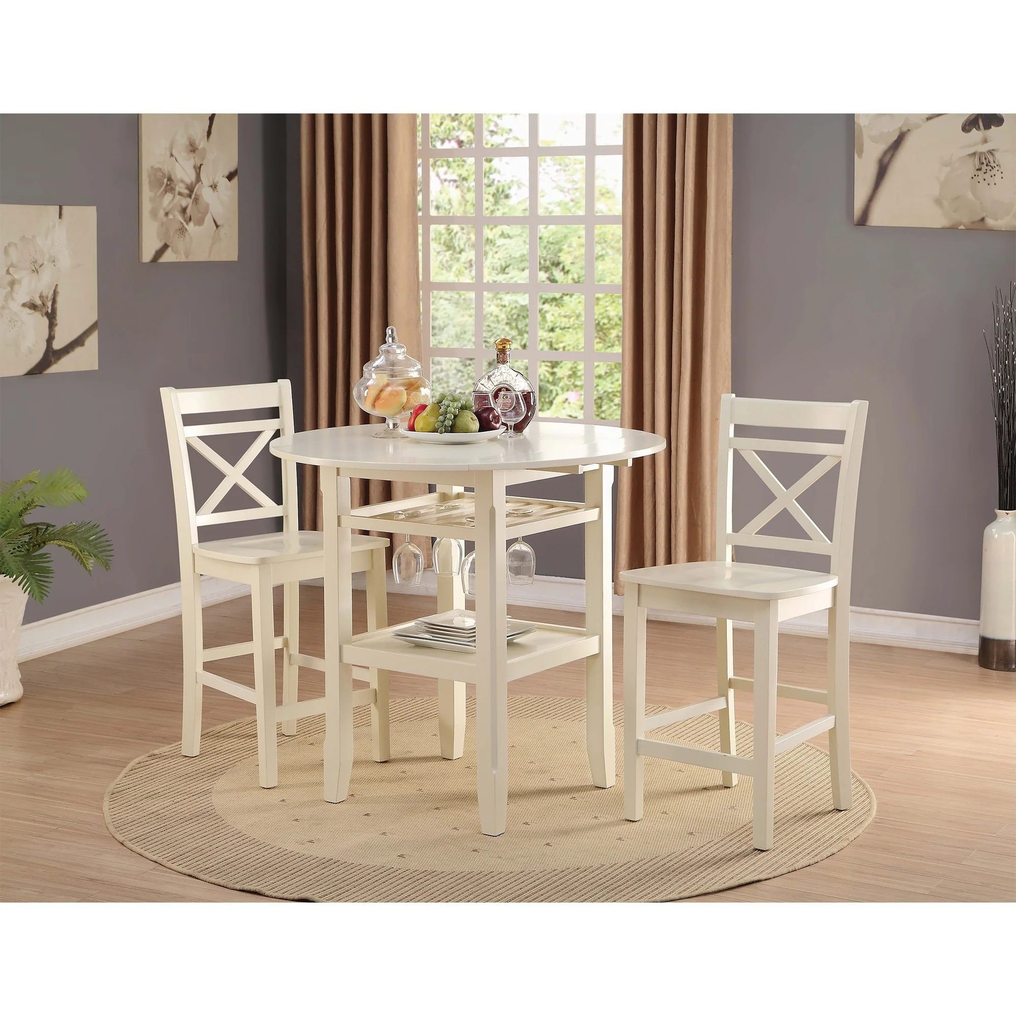 Cream 2-Shelf Counter Height Table,exclude chairs