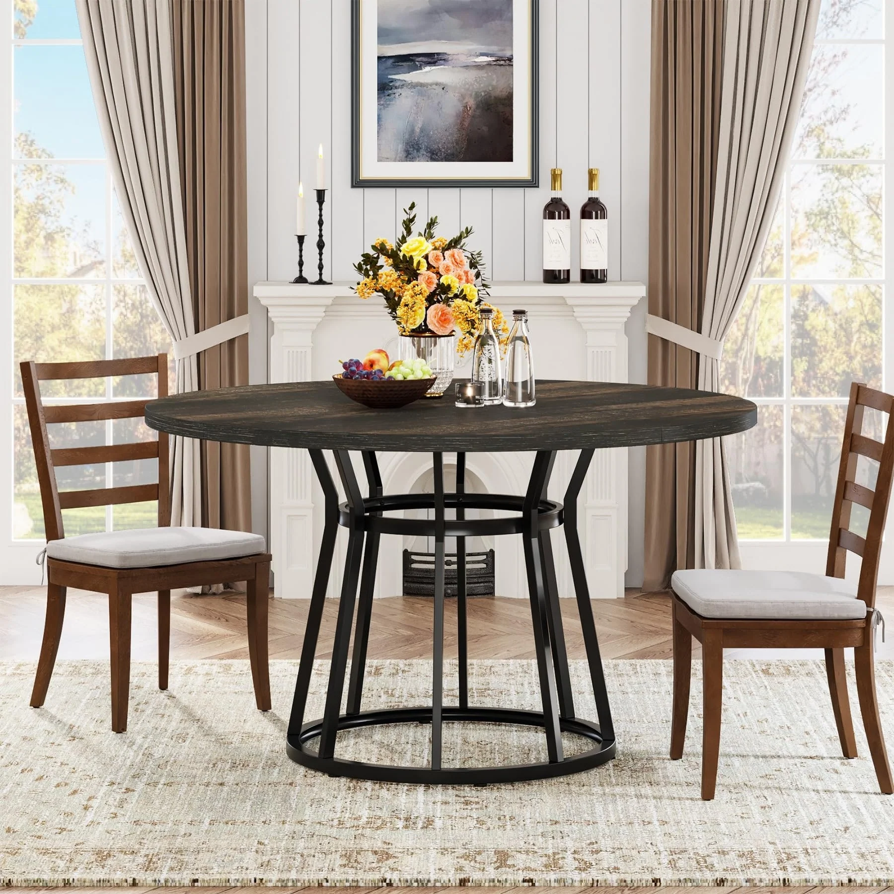 Square Dining Table Set, Industrial Dinner Table with Metal Base