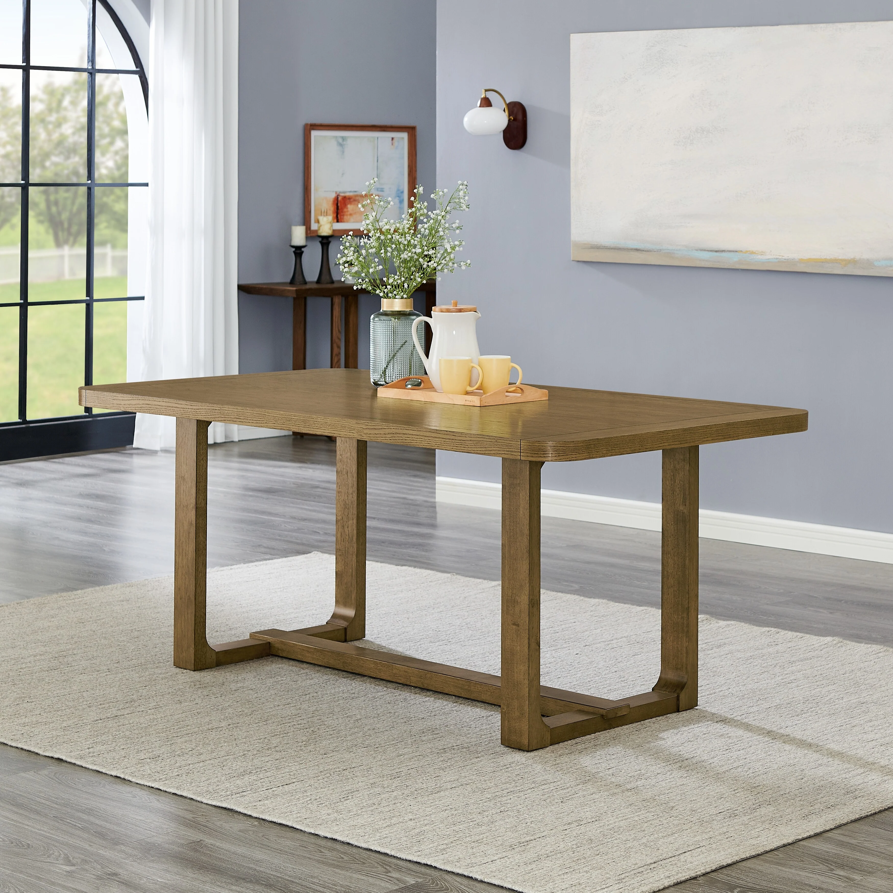 Roundhill Furniture Parker Dining Table, Trestle Base, Light Oak