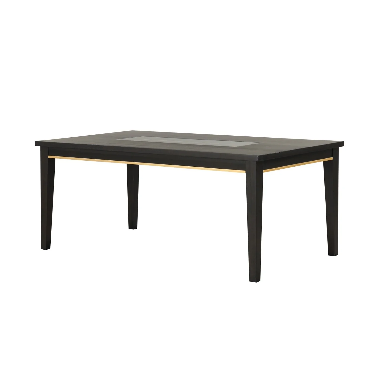 Rectangular Wooden Dining Table with Glass Top in Espresso